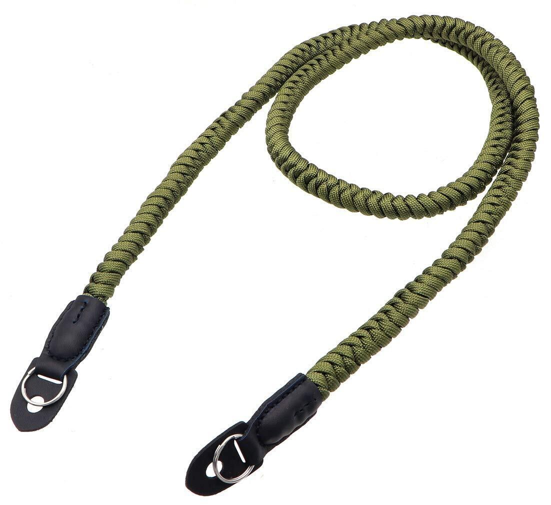 INPON カメラストラップ パラコード編み ネックストラップ ショルダーストラップ 丸リング/リングカバー付き 一眼レフ/ミラーレスカメラ用 グリーン 線径13mm 全長105cm