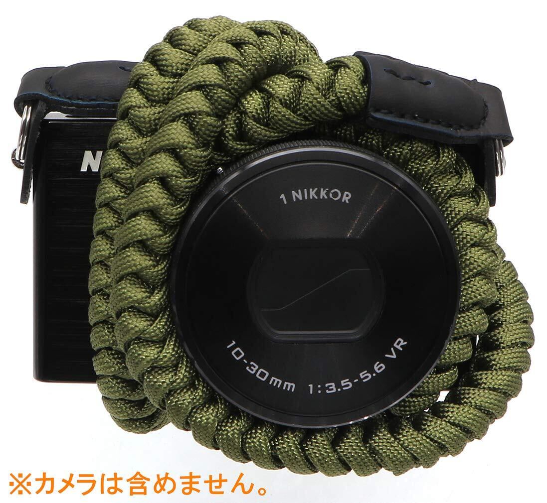 アウトドアでよく使われたパラコードで編み込まれます。耐久性と耐摩耗性に優れたカメラストラップです。