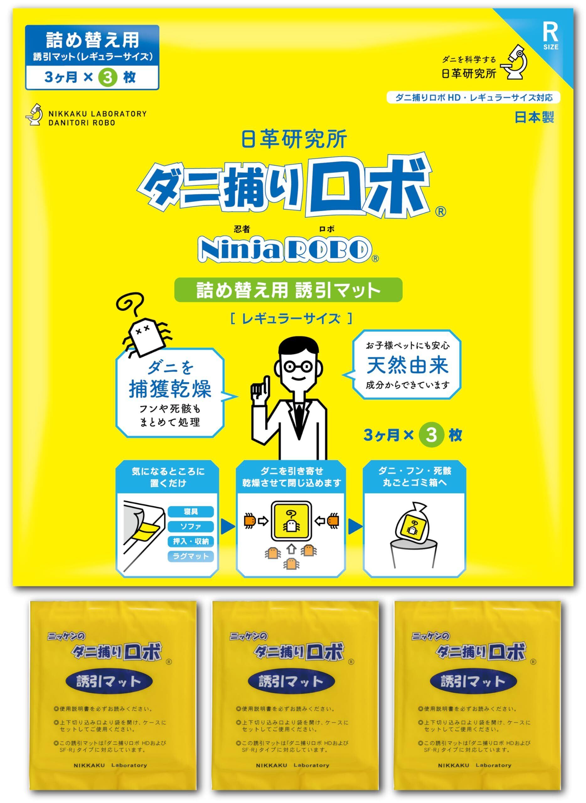 【ダニ増殖抑制率100%】ダニ捕りロボ 詰め替え 誘引マット ( レギュラー 3枚 ) 日本製 乾燥 ( ダニ取りシート / 3か月有効 / 殺虫剤成分ゼロ ) 赤ちゃん ペットにも安心 日革研究所