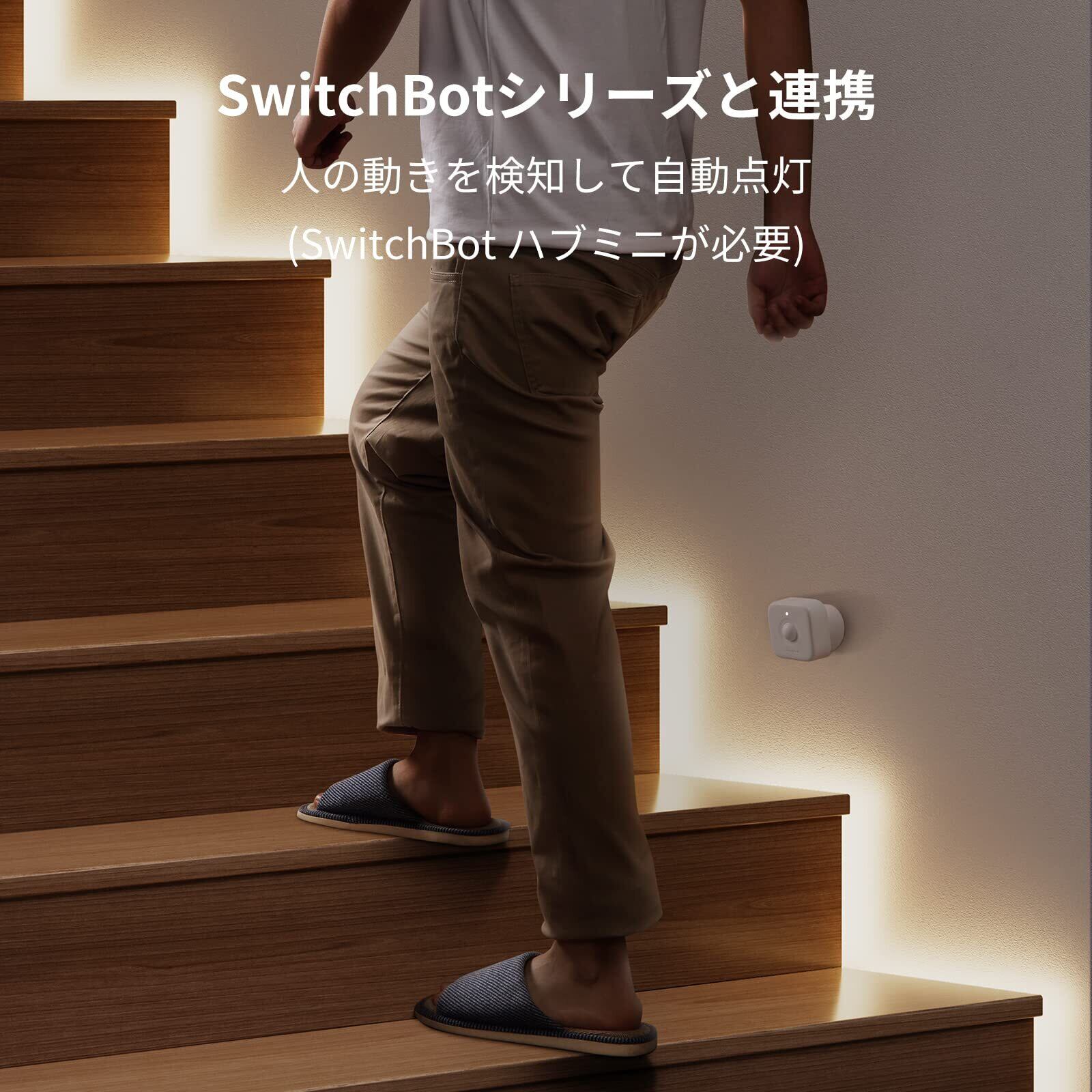 【SwitchBotシリーズと連携】夜中にトイレに行く時、ベッドの下に設置した人感センサーが人の動きを検知し、テープライトが自動でゆっくり20%まで明るくなります。急にまぶしい光りを入り、眠気が邪魔されることはありません。