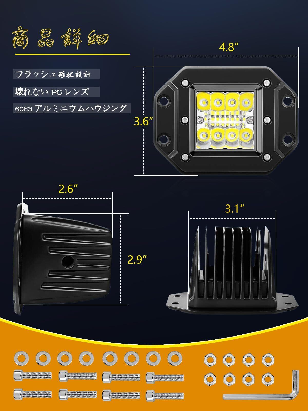 Chelhead 埋め込みLED作業灯 48w ホワイト 5インチ LED ワークライト 12V-24V対応 汎用 車外灯 ジムニー 補助灯 農業機械 2個セット