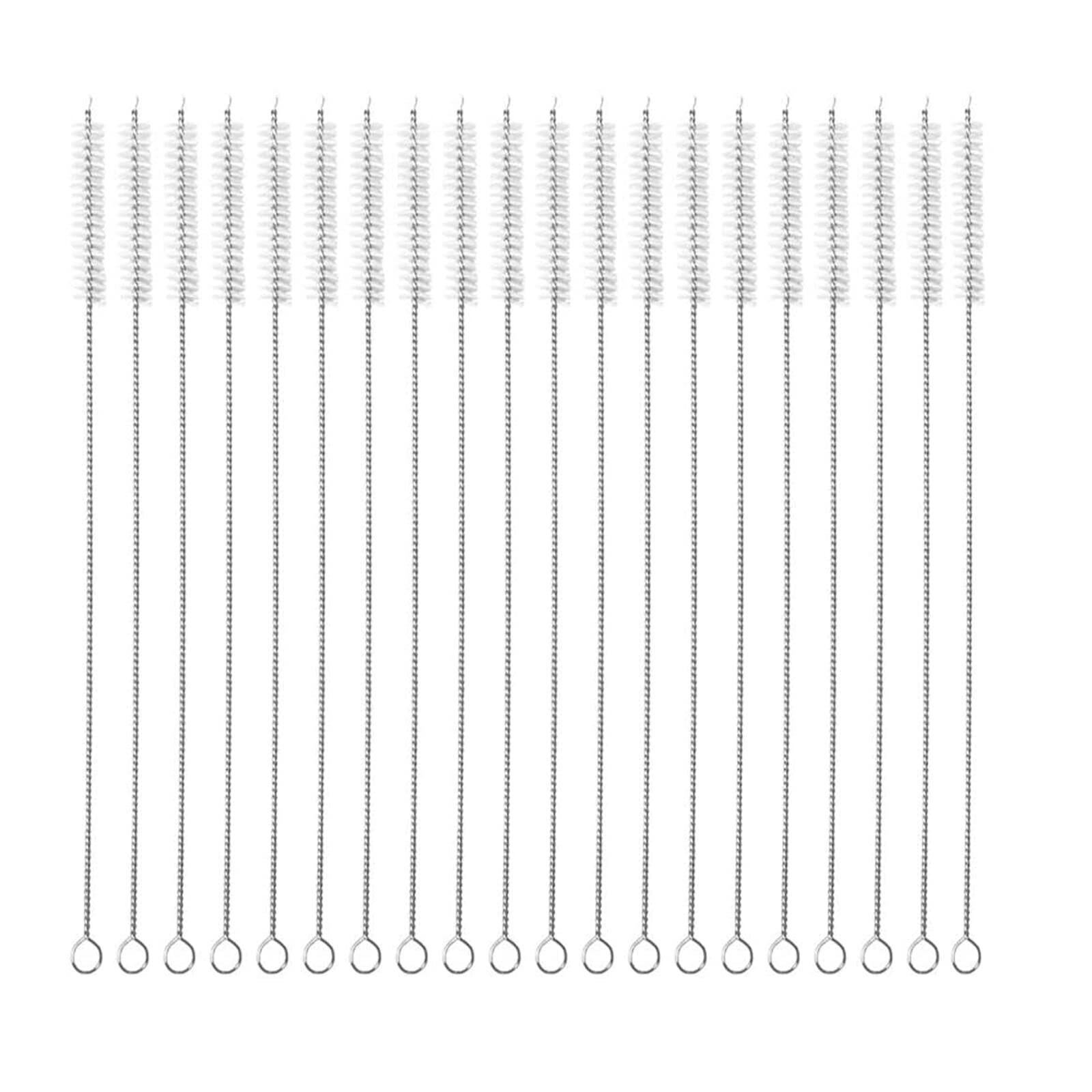DFsucces ストローブラシ 哺乳瓶ブラシ 極細ナイロン ステンレス製 細いストローの中まで洗えて衛生的 (175mm-20本セット)