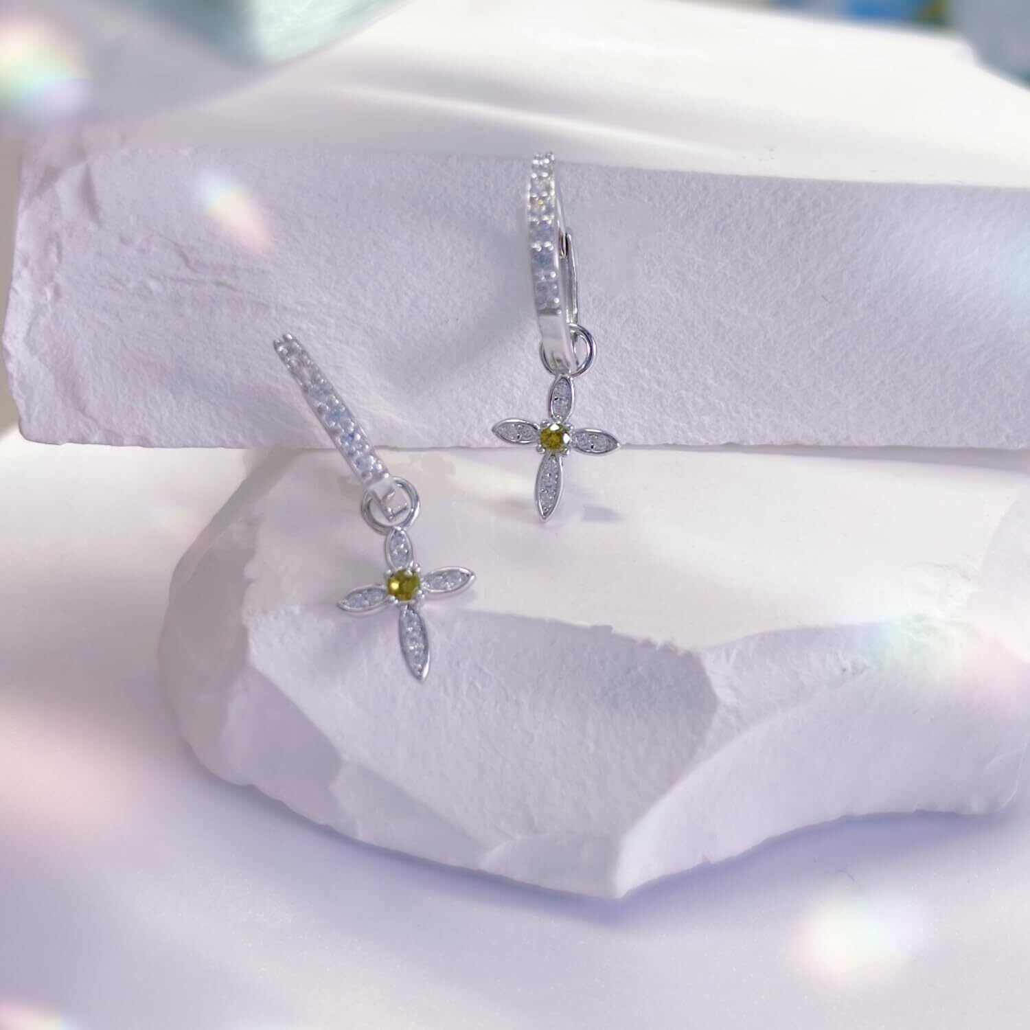 【在庫処分】Naniwaai ピアス レディース 誕生石 フープ ピアス 揺れる 2Way 花 ピアス 女性 シルバー 金属アレルギー対応 ピアス クロス 大人 アクセサリー プレゼント 誕生日 結婚記念日 カジュアル フォーマル