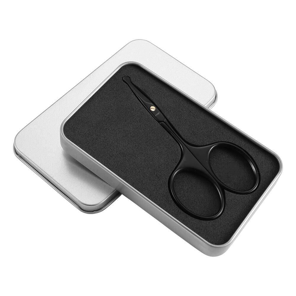 LIVINGO 鼻毛はさみ 丸いセーフティはさみ 鼻毛切りシザー プレミアムステンレス鋼 曲刃 先丸 眉毛ハサミ チタンコーティング 化粧男女兼用 (ブラック) 収納ボックス付き