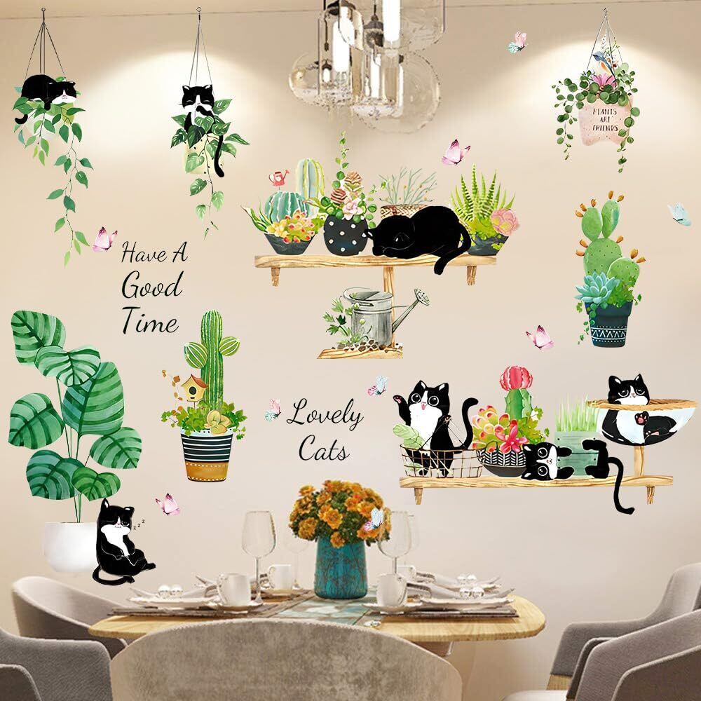 【新春セール】WETARENDA ウォールステッカー 緑 葉 猫 おしゃれ 植物 壁紙シール ウォールシール 蝶 壁紙シ 春 観葉植物 壁 シール ステッカー 部屋飾り 防水 可愛い ウォールデコ 剥がせる PVC素材 インテリア DIY シール 北欧風 北欧 部屋 トイレ 子供部屋 階段 寝室 リビングルーム 壁飾り30x90cm 2枚セット