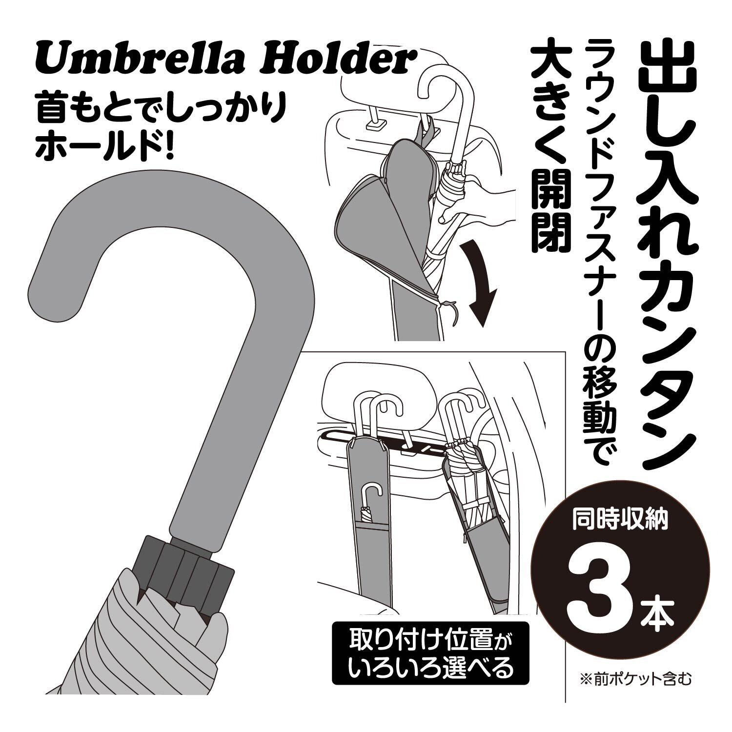 【仕様】簡単装着 傘を3本まで収納できます。※前ポケットを含みます。