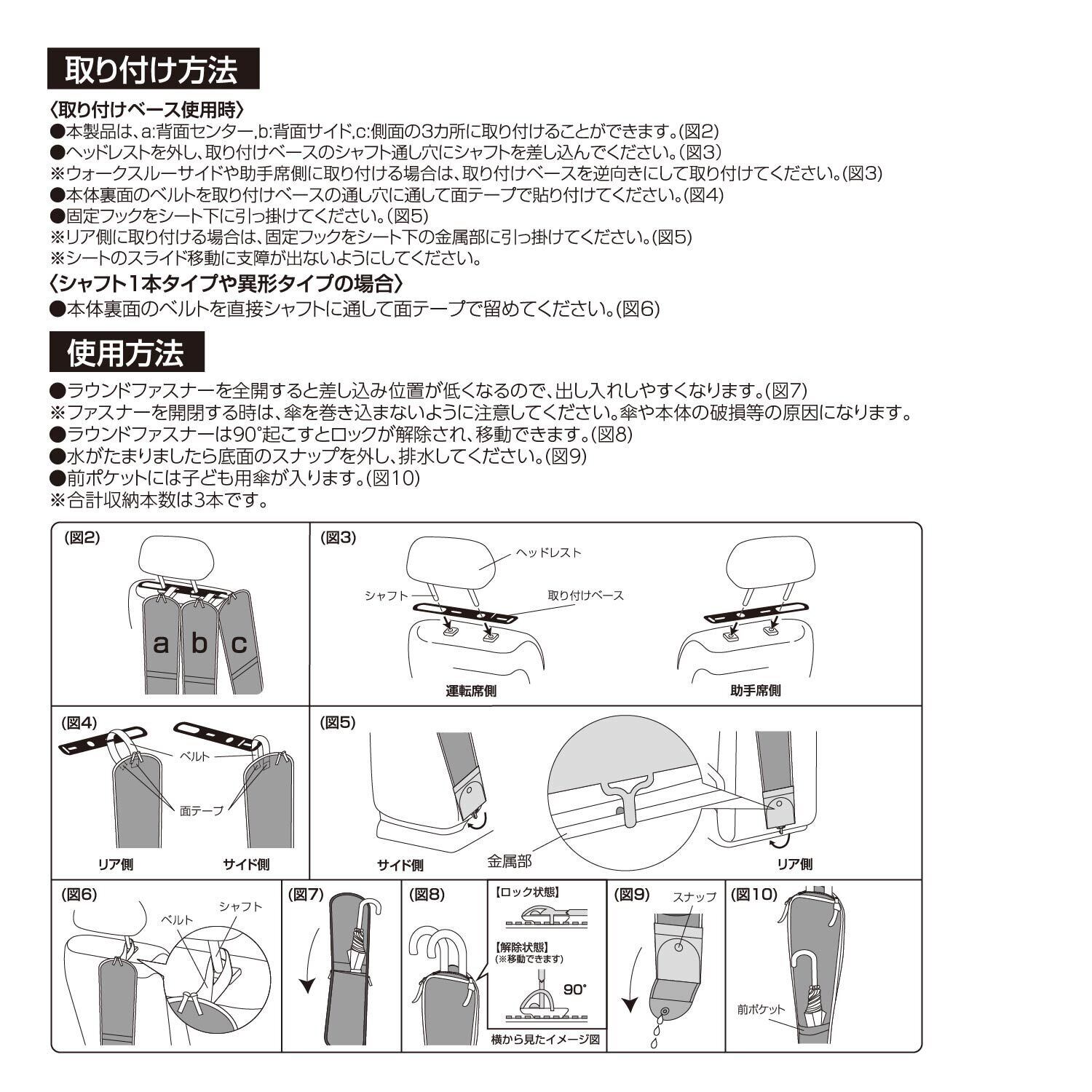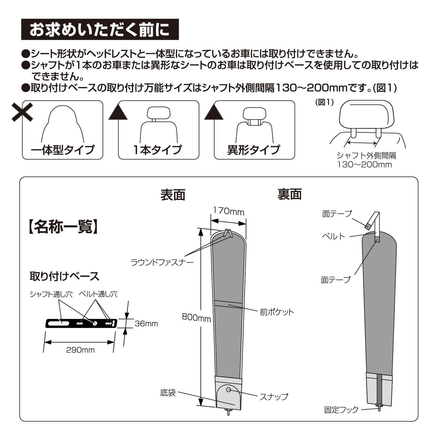 【適合】ヘッドレストシャフトに吊るすだけの簡単装着 固定バンド付きで走行中もしっかり固定 ほとんどのお車に装着可能です。