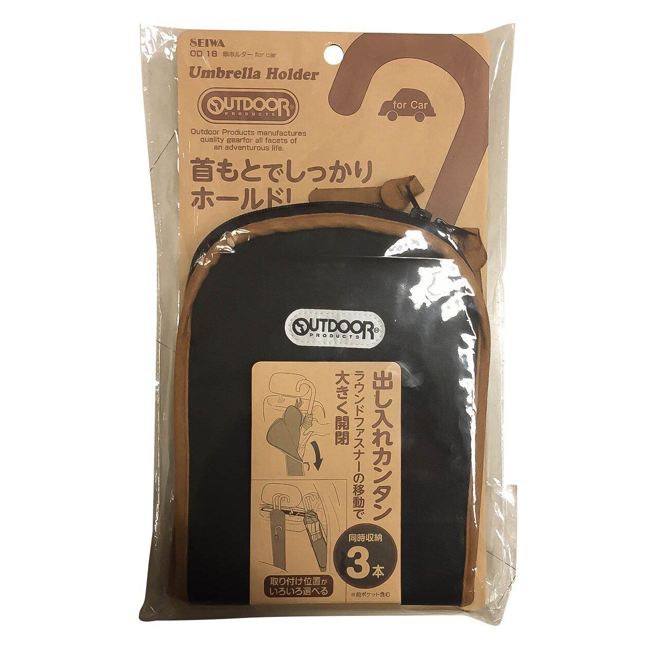 OUTDOOR PRODUCTS(アウトドアプロダクツ) 車内用品 傘ケース アンブレラケース 傘3本 スッキリ収納 出し入れ簡単 OD18 セイワ(SEIWA) 傘ホルダー 傘カバー 傘入れ 傘 カサ