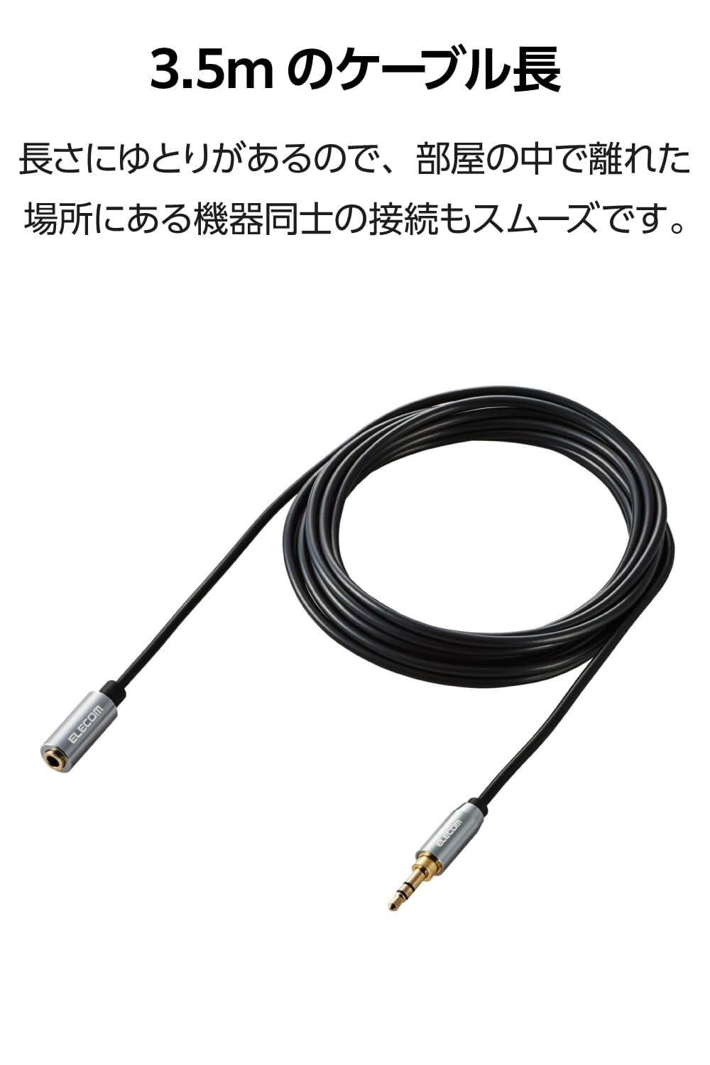 エレコム オーディオケーブル 延長 イヤホン 3極 3.5mm ステレオミニプラグ 延長コード 3.5m AUX [信号の歪みや伝送ロスが少ない] ヘッドホン/スマホ/PC/TV ブラック ECDH-35E35BK