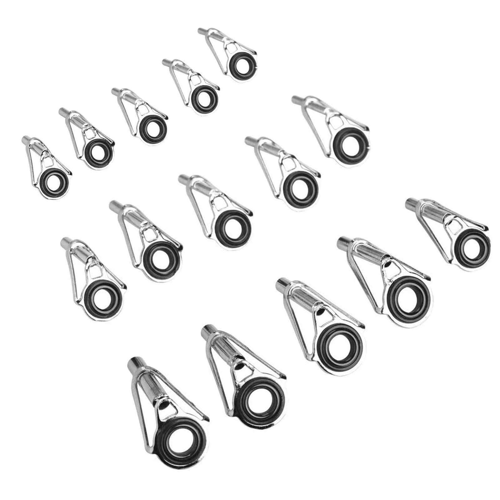 【在庫セール】YFFSFDC トップガイド 15個セット ロッドガイドステレンス 釣り竿穂先 交換 修理キット ロッドの修理 0.9mm、1.2mm、1.4mm