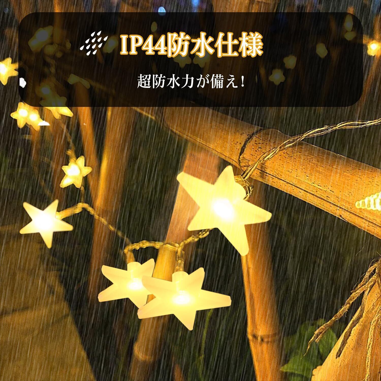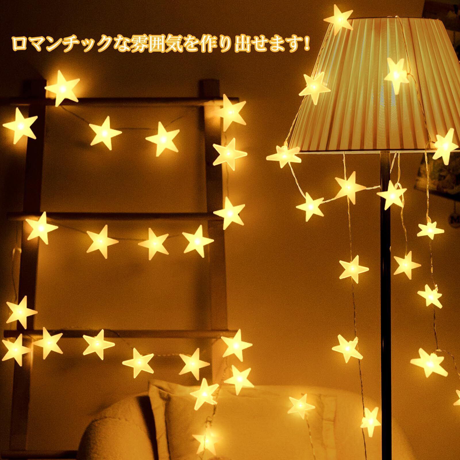 【在庫セール】育のさち 星型 おしゃれ LED フェアリーライト 電池式 星型 省エネ 8種照明モード 防水IP44 クリスマスツリー飾り カーテンライト 飾りスター ガーデン・イベント・パーティー・結婚式・学園祭最適 (ウォームホワイト/4.5m /30球) クリスマスストリングライト
