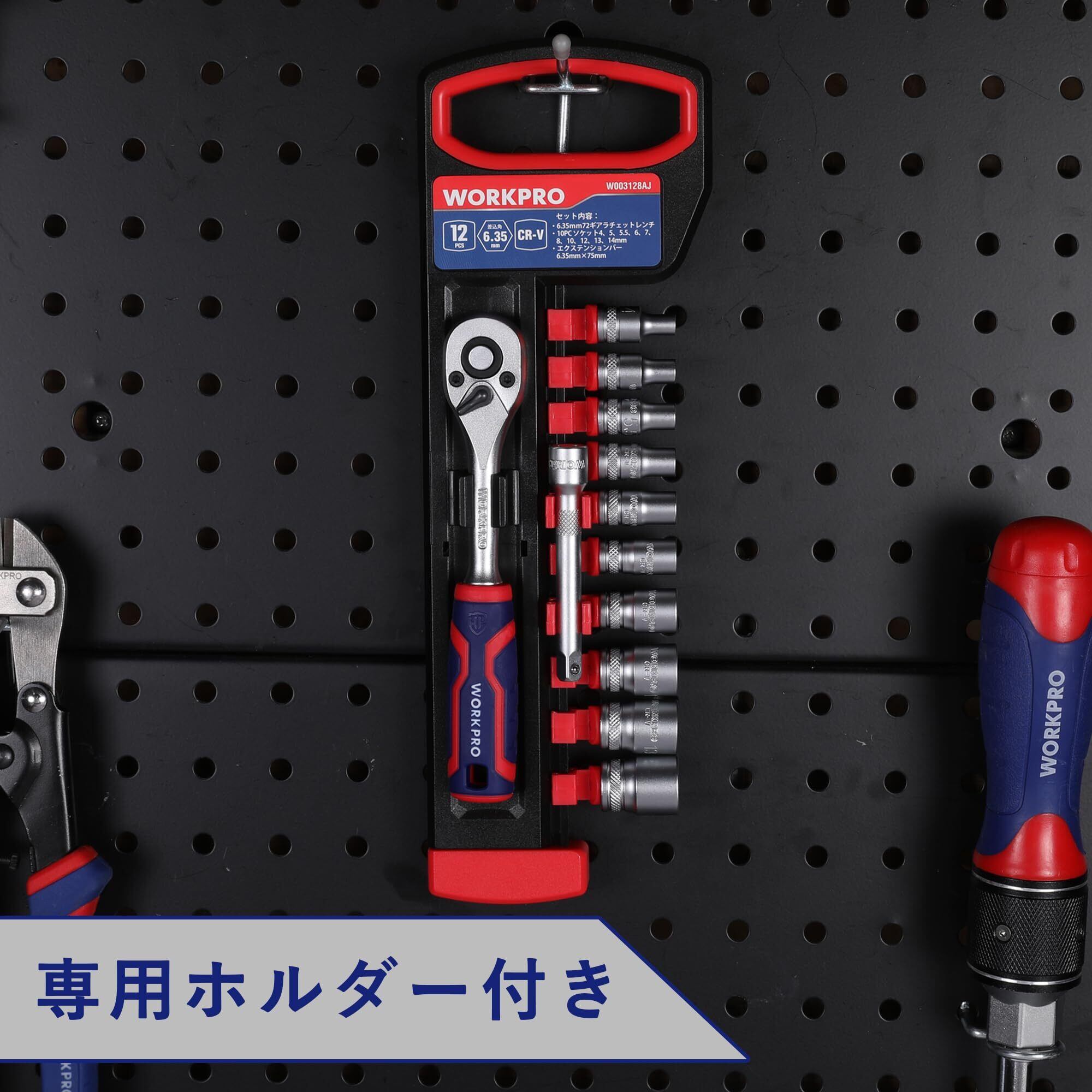 【特価セール】WORKPRO ソケットレンチセット ラチェットレンチ 差込角6.35mm 12点組 六角ソケット クイックリリースラチェットハンドル 車載工具 ホルダー付き 車 バイク 機械点検 メンテナンス