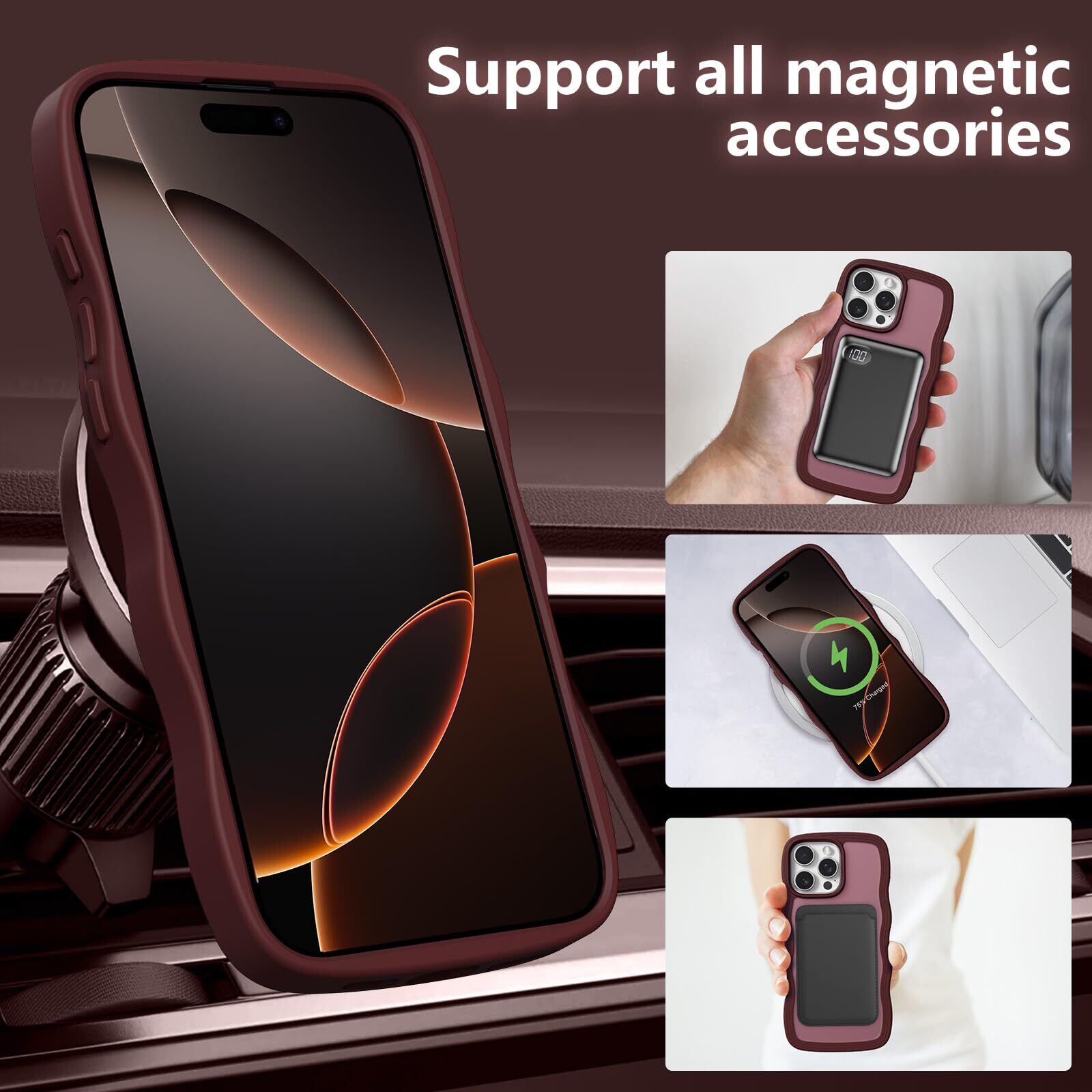 【在庫処分】ZTOFERA iPhone 14 Pro Maxケース用,【MagSafe対応】キュートなウェーブの半透明マットスマホケース 女性用 女の子用 男性用 iPhone 14 Pro Maxケース,ワインレッド | allstore3