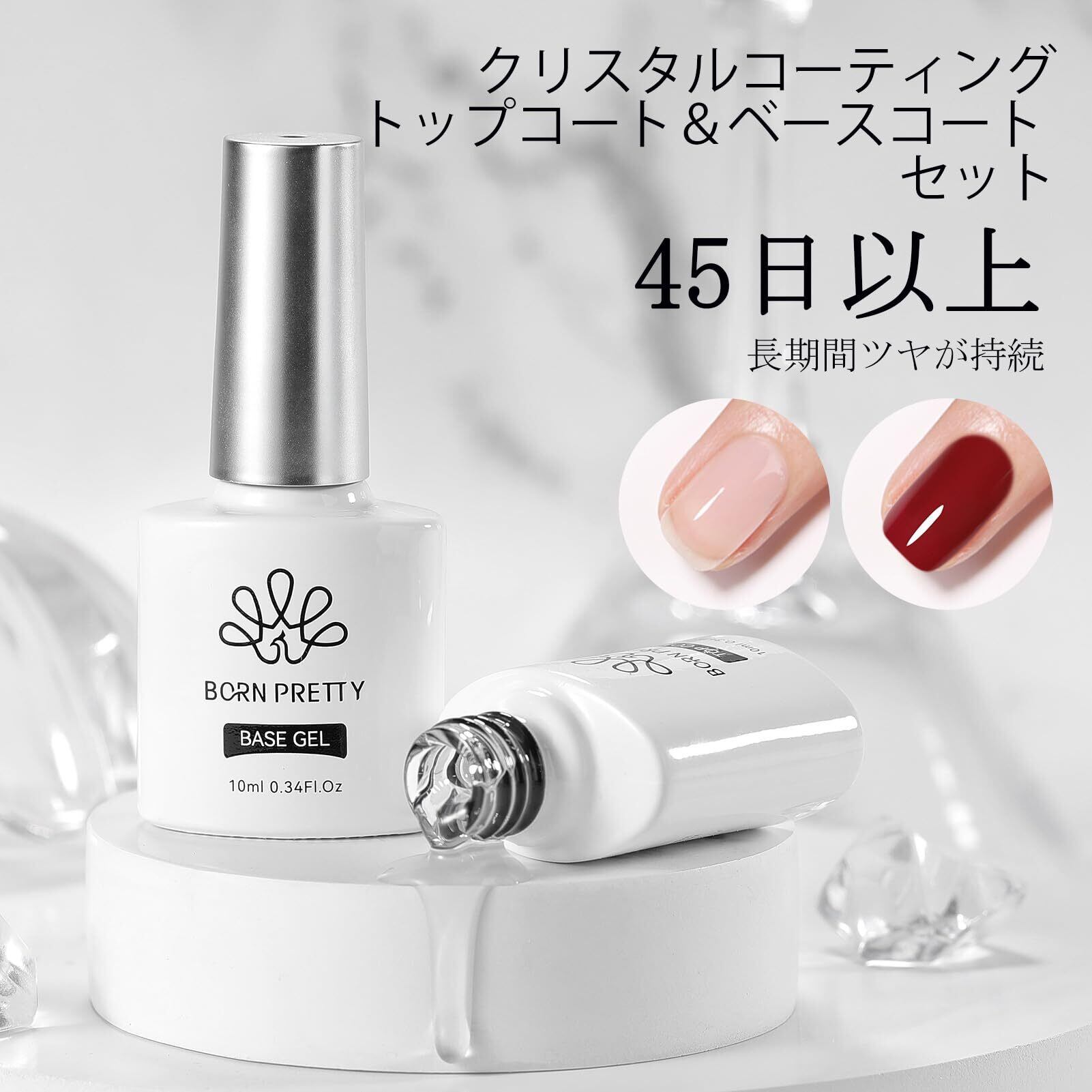 【在庫セール】BORN PRETTY ジェルネイル トップコート ベースコート 10ml 2本セット ノンワイプ 拭き取り不要 大容量 ジェルネイル用 UV/LED対応 カラージェルネイル
