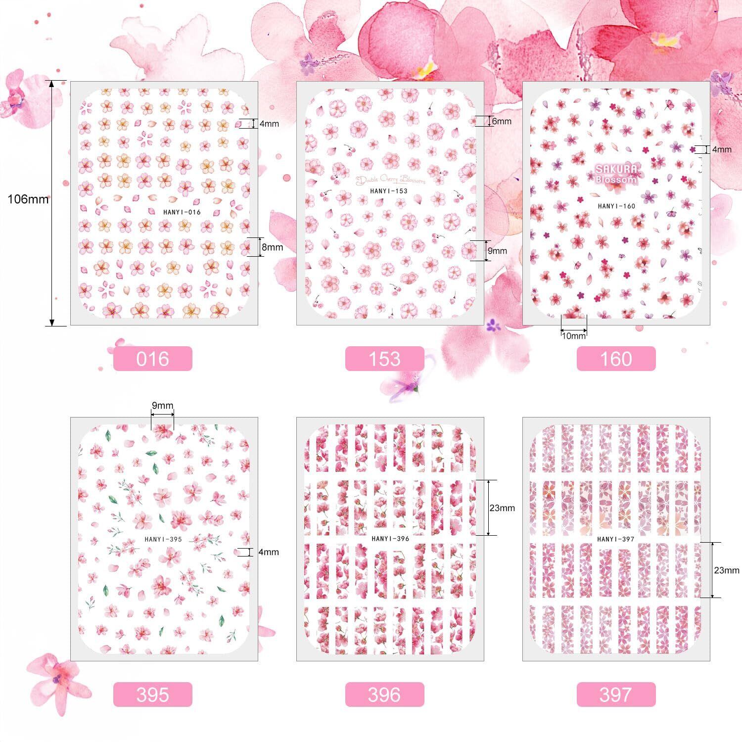 【新着商品】Chisafly ネイルシール 花 桜 ネイルステッカー 八重桜 花柄 お花 花びら 押し花 春 ピンク 6枚セット