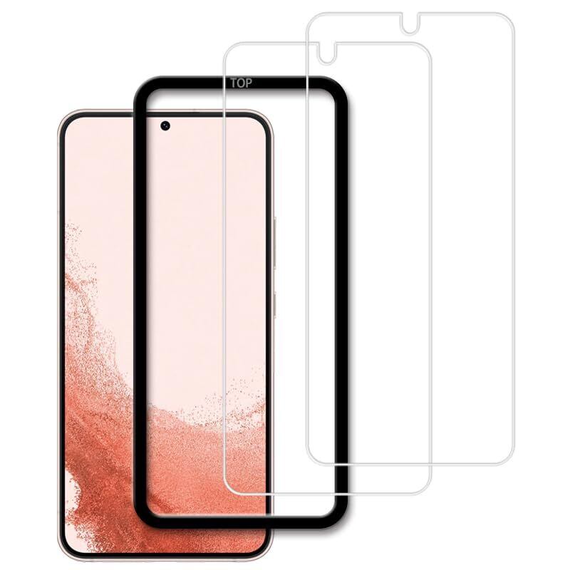 ガイド枠付き 日本旭硝子製 対応 Galaxy S22 SC-51C SCG13 用 ガラスフィルム 強化ガラス 液晶保護フィルム 9H硬度, 2枚