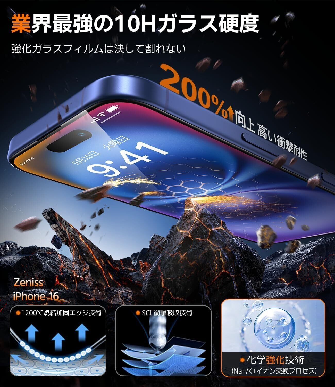 【2022最新】Zeniss iPhone 16 ガラスフィルムに適合する 【米軍規格航空材料&革新的なガイド枠】2枚セット iphone16保護フィルム 耐衝撃·硬度10H 全面保護 気泡レス 自動吸着 貼りやすい アイフォン16 用 フィルム 超鮮明な画質 高光沢 ブルーライトカット 目に優しい 携帯フィルム 指紋防止 飛散防止 スクラッチ防止 いphone16 スマホフィルム 強化ガラス 極細黒縁あり 6.1インチ