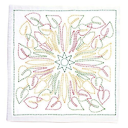 刺して楽しく、刺し終わった後は使っても飾っても嬉しいキット。ハワイアンキルトで人気がある図案の刺し子です。針ものがたりの刺し子針1本、糸、水で落とせるプリントつきの晒し木綿が入ったキットです。