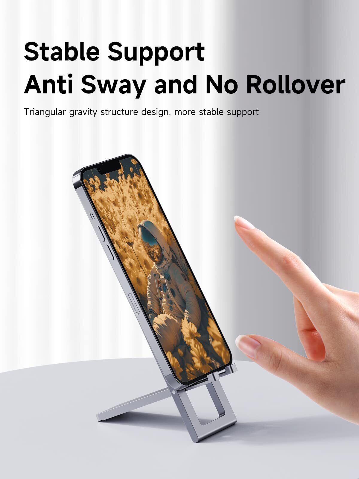 角度調整可能:この携帯電話スタンド角度は0°から90°まで無段階のギア調整を実現できます。 調整可能なので、番組を見たり、電子書籍を読んだり、ベッドサイドの電話スタンドとして使用したりするのに最適な視野角を得ることができます。