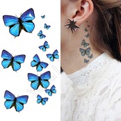 【セット内容】タトゥーシール 蝶 青、6枚セット。6種類、各1枚。蝶、 蝶々 、 バタフライ。