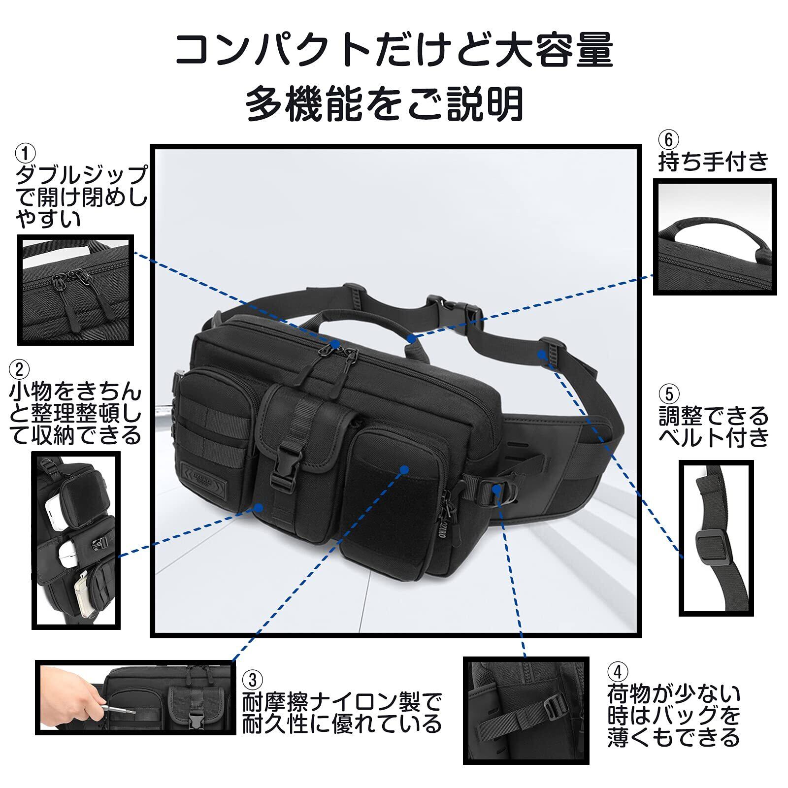 【2022最新】IDEASHOW 2WAY ウエストバッグ 多機能 ウエストポーチ 収納力 ボディバッグ 11ポケット ベルトバッグ 旅行バッグ 調節可能ベルト 小分け用フロントポケット ショルダーポーチ ワンショルダー ヒップバッグ バイク 釣り 旅行 ランニング 仕事 作業用 4L (ブラック)