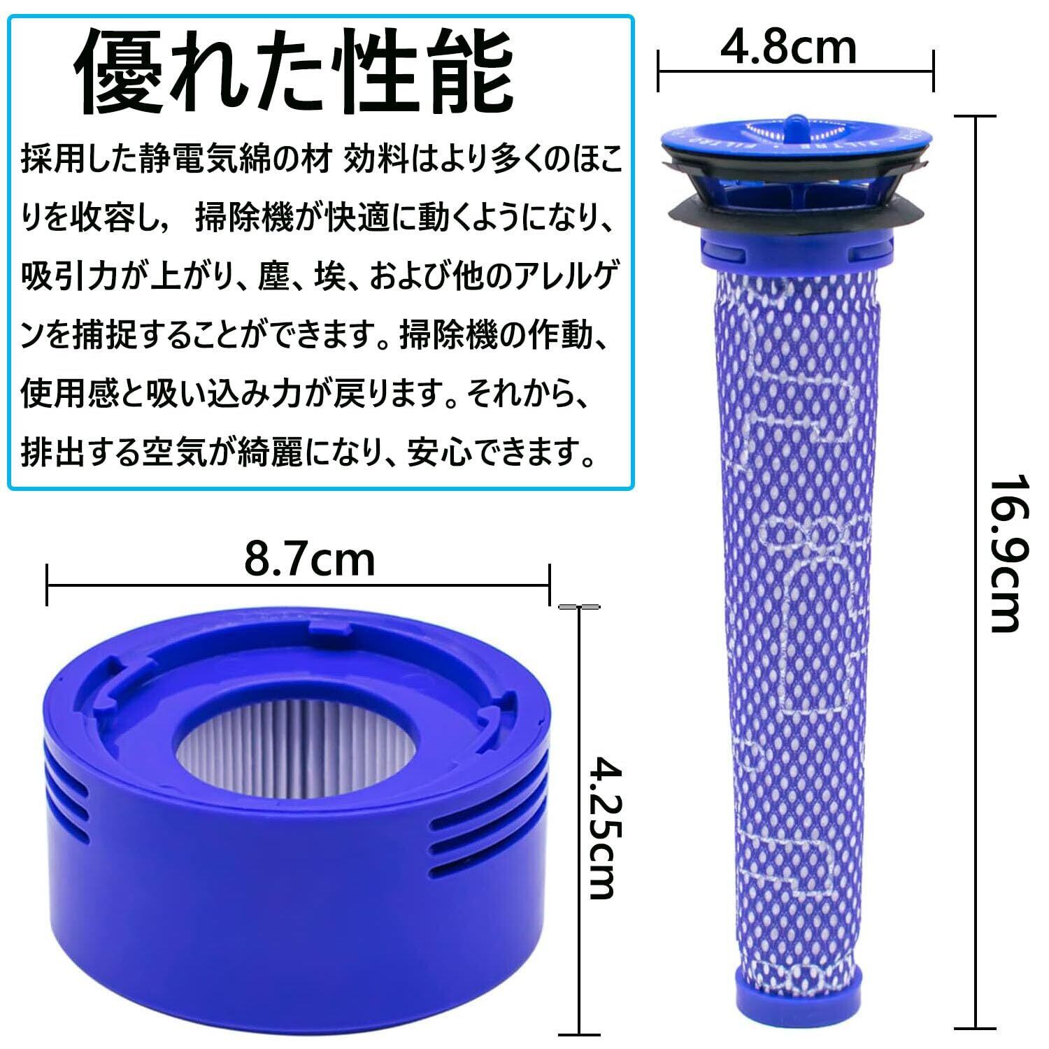 VISFIN ダイソン 掃除機用フィルターV7 V8 SV10 SV10D SV10K SV11 HH11シリーズ用掃除機タフィルタプレフィルタとシリンダモ