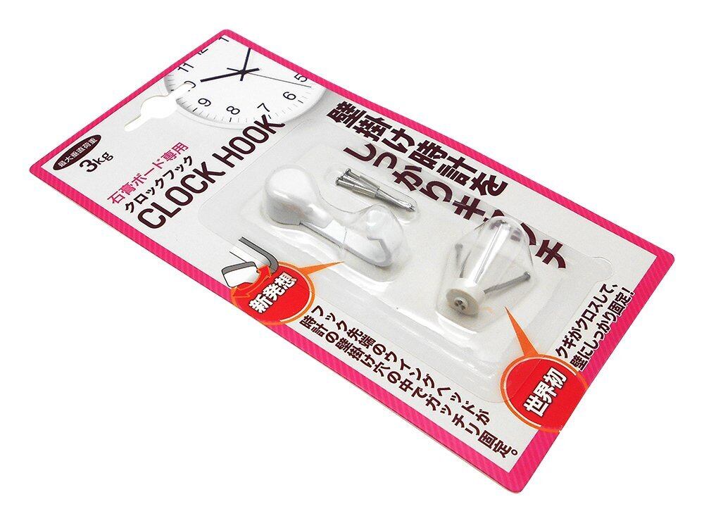 新発想! フック先端のウイングヘッドが時計の壁掛け穴の中でガッチリ固定