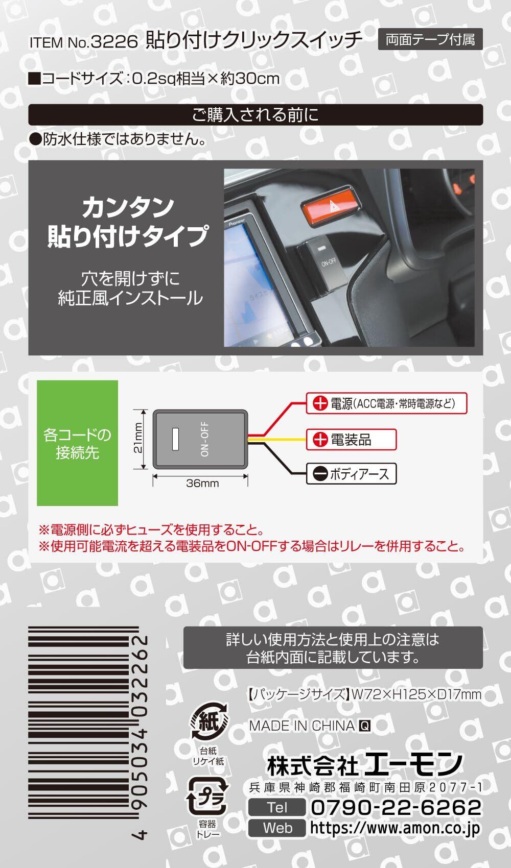 エーモン(amon) 貼り付けクリックスイッチ マウス感覚の押し心地 ON-OFF DC12V・1A LED発光色:ブルー 3226