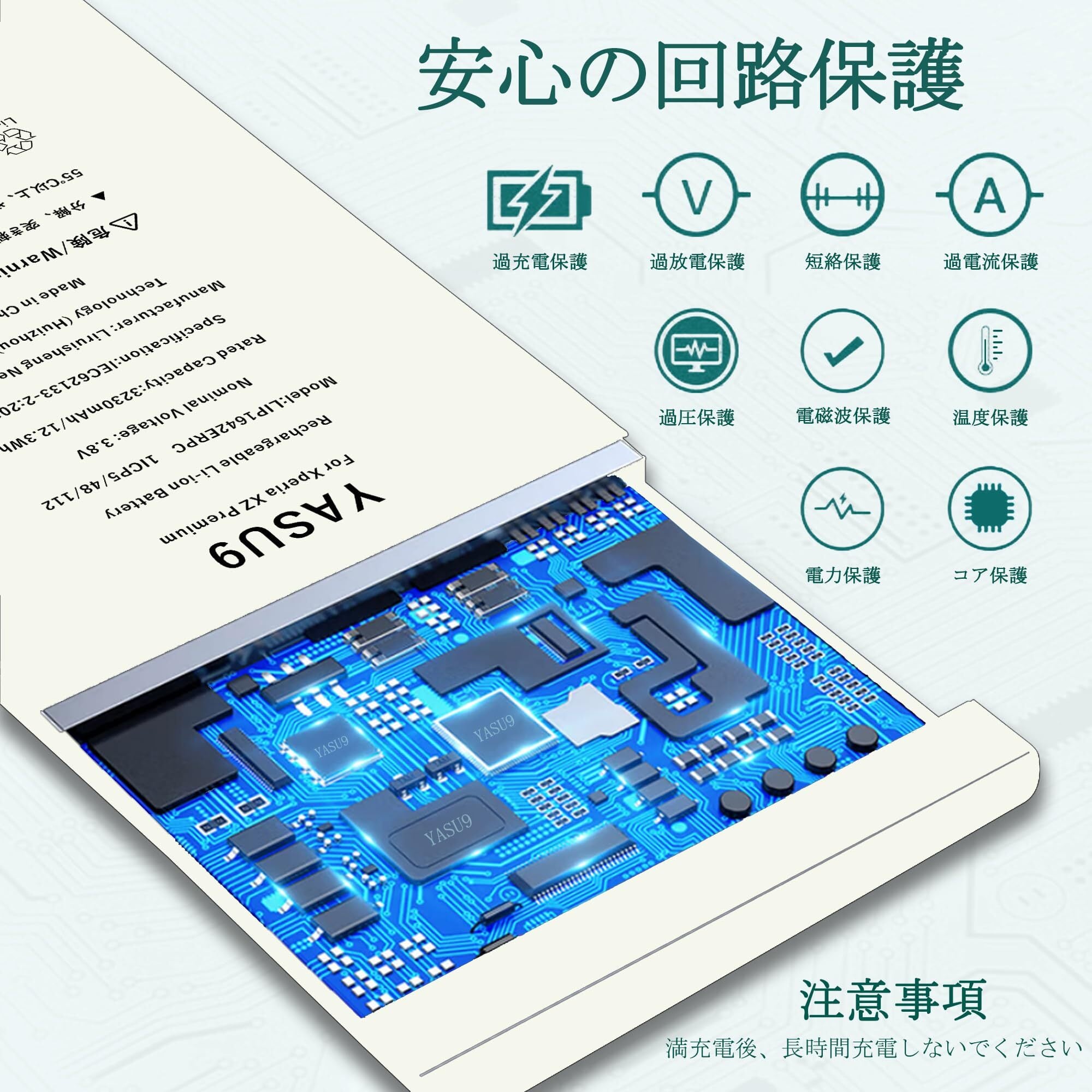 【安心の回路保護】私達のSony Xperia XZ Premium 交換用バッテリーは、保護回路設計は元のバッテリーと同じであり、高性能ICチップを使用し、精密なパワーマネージャを搭載し、電池のリアルタイム、正確な制御を実装することができ、大幅にバッテリーの短絡、過充電、過放電、過電圧およびその他の異常な障害を低減し、大幅にバッテリ回路の安全性と信頼性を向上させます、適用SO-04Jバッテリー。