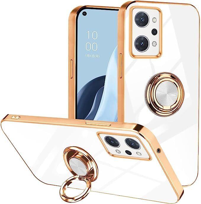 【人気商品】【Yikasina】 OPPO Reno9 A/7 A ケース リング付き おしゃれ スマホケース オッポ リノ7 a ケース OPG04 かわいい 人気 車載ホルダー スタンド機能 シンプル (OPPO Reno 9 a / 7 a, ホワイト)