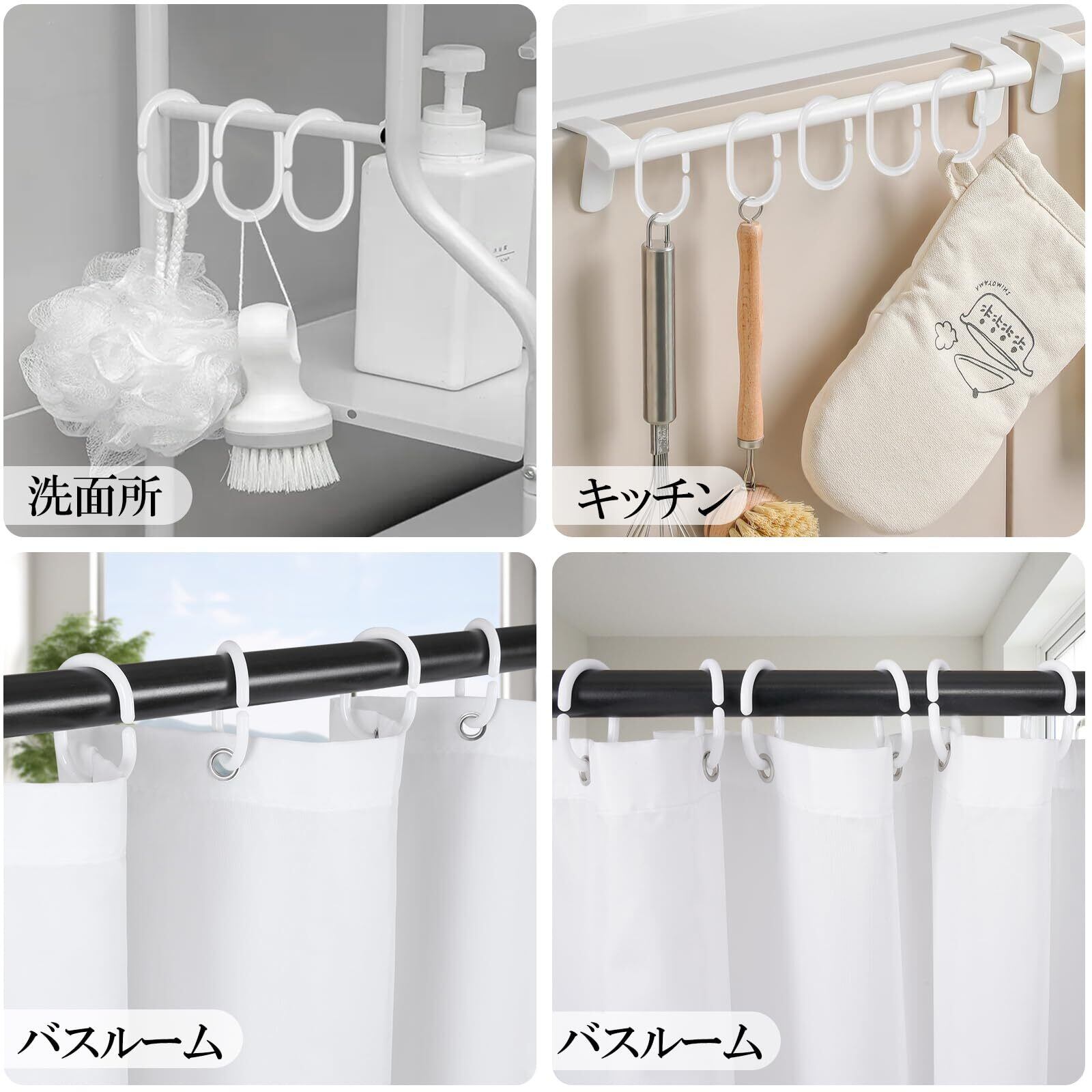 【在庫セール】AooHome シャワーカーテン リング 厚い 小窓カーテン 白 ホワイト カーテンリング シャワーカーテンフック ユニットバス お風呂カーテン フック リング バス用品
