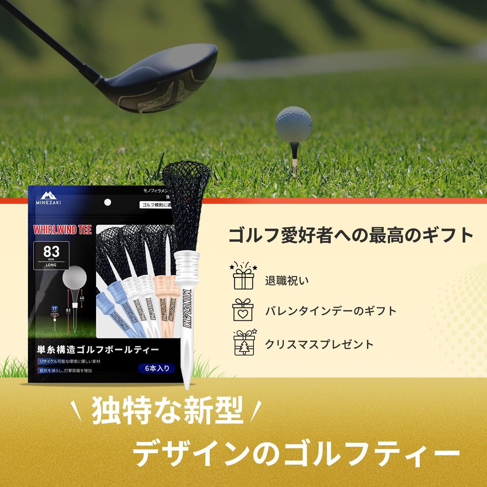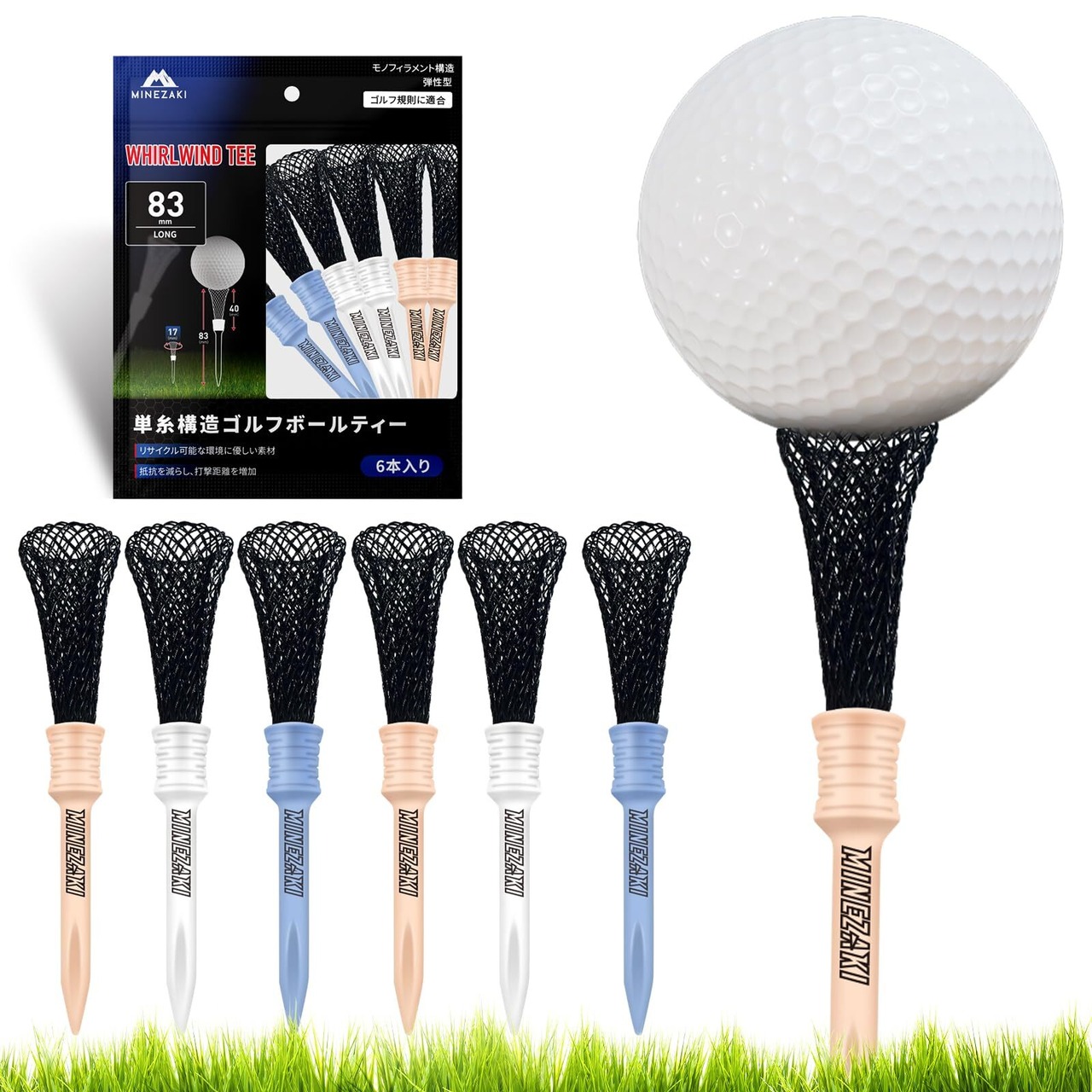 Minezaki【セット品】旋風ティー ゴルフティー ロング 正規品 モノフィラメント構造ティー 弾性型 アップグレードヘッド 幅17mm でボールが乗せやすい ゴルフコンペ アクセサリー ゴルフ用品 ロングティー (83mm) 6本入