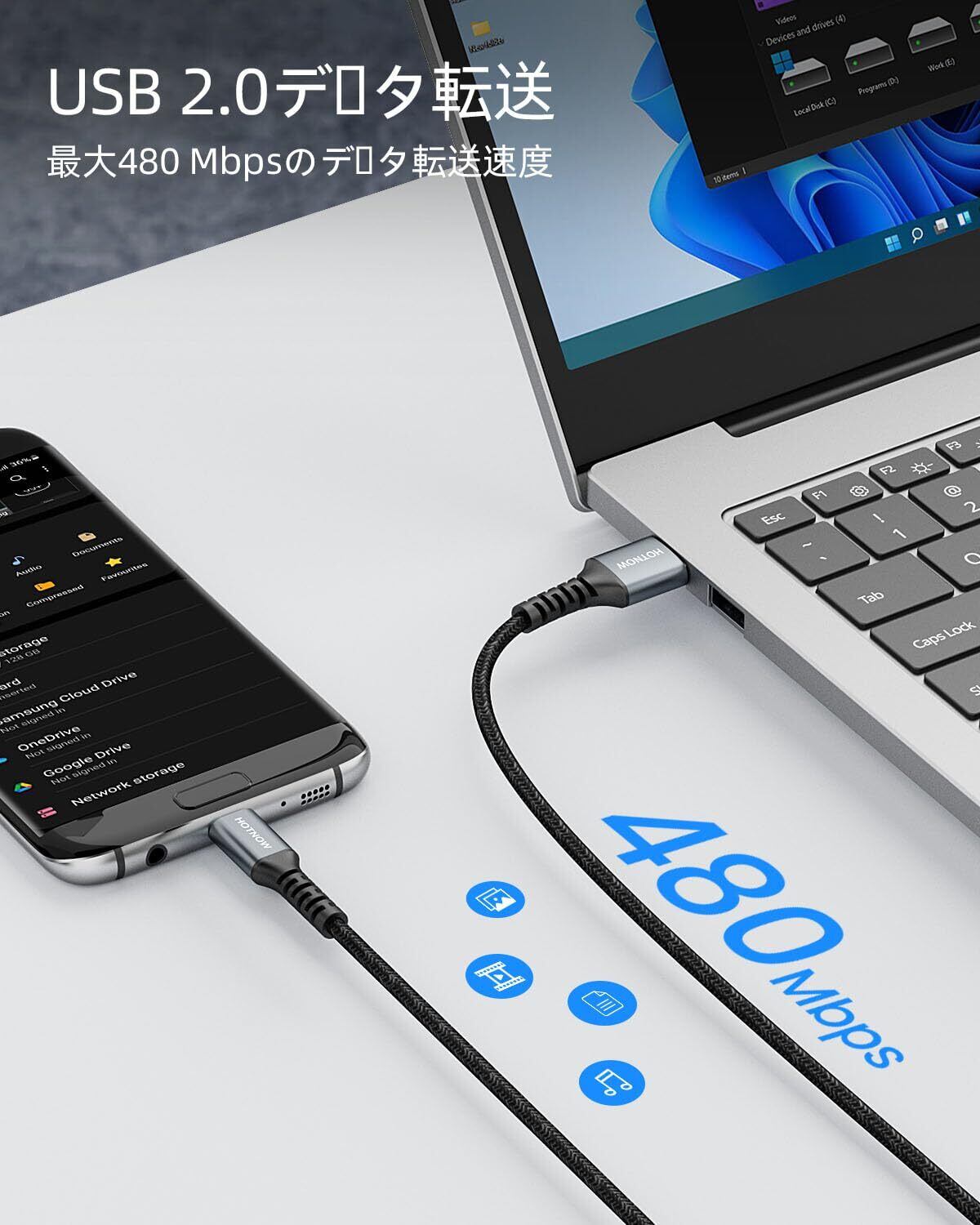 「急速充電を実現!」QC 3.0に対応したこのUSB Cケーブルは、高速充電が可能です。スマートフォンやタブレットを素早く充電したい方に最適なアイテムです。日常使いにも最適で、充電時間を大幅に短縮できます。