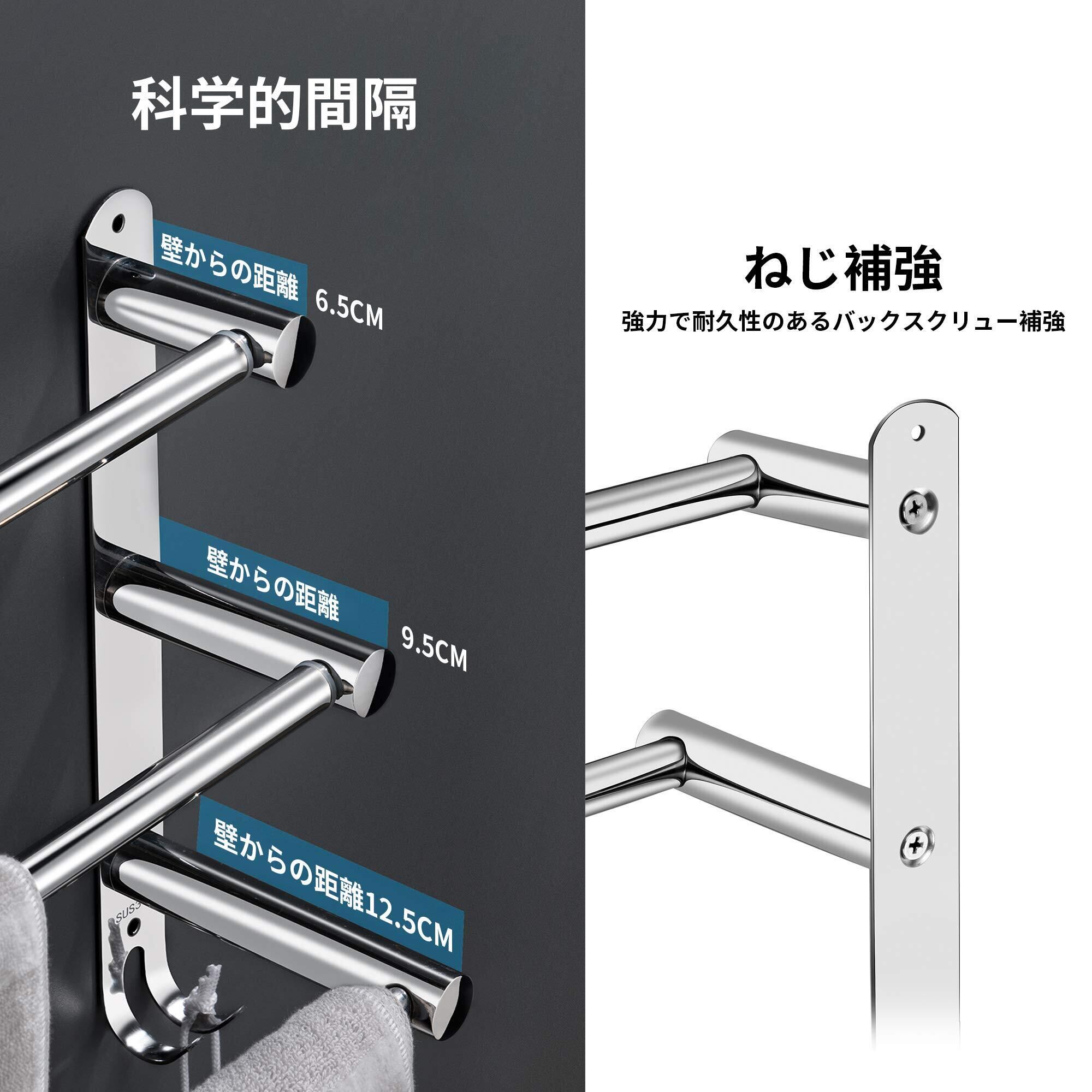 【新着商品】伸縮可能なステンレス製タオルハンガータオル掛け 強力粘着 バスルーム用 壁掛け式 穴なし取り付け 穴あけ取り付け 洗面所 キッチン省スペース 43-78cm 3段式 | allstore3