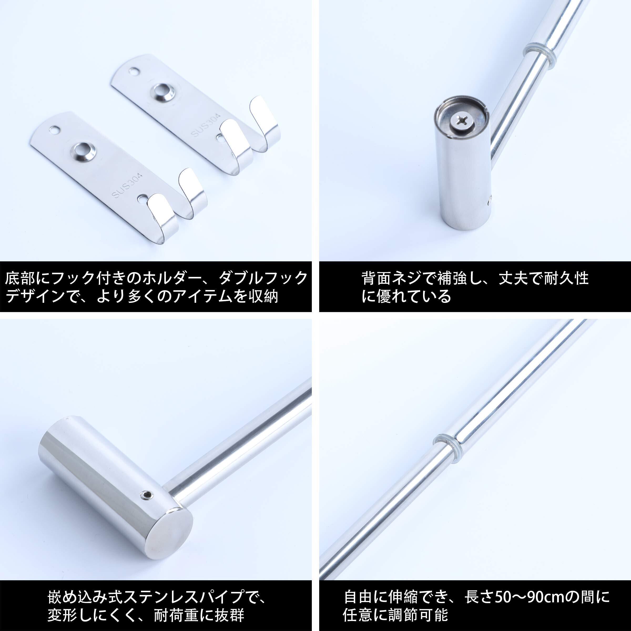 「おしゃれで機能的!」シンプルなデザインのステンレス素材は、どんなインテリアとも調和し、モダンで洗練された印象を与えます。バスルームや洗面所だけでなく、キッチンでもタオルやふきんを stylish に配置することができ、生活空間をおしゃれに演出します。