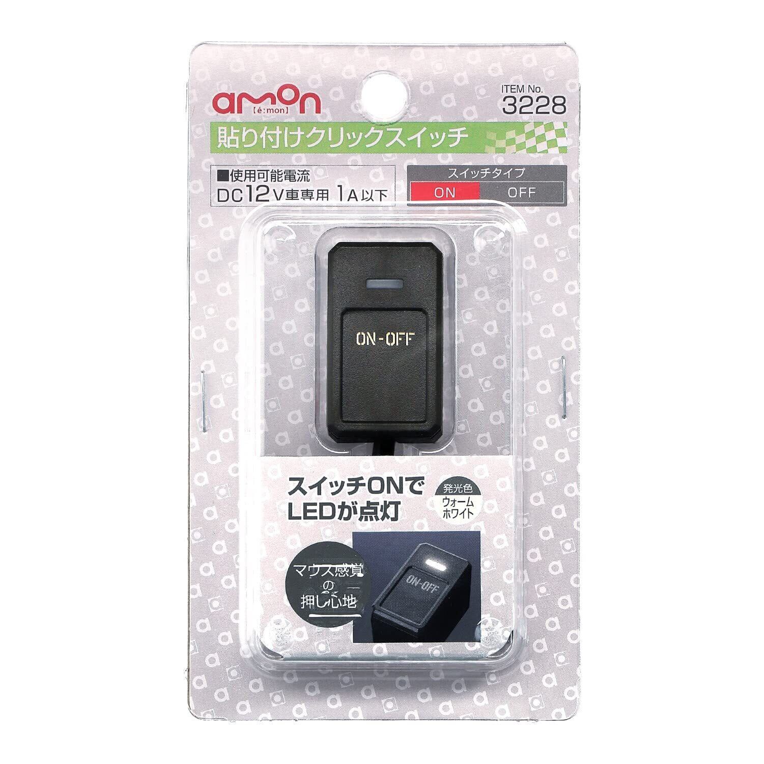 エーモン(amon) 貼り付けクリックスイッチ マウス感覚の押し心地 ON-OFF DC12V・1A LED照光タイプ 発光色:ウォームホワイト 3228