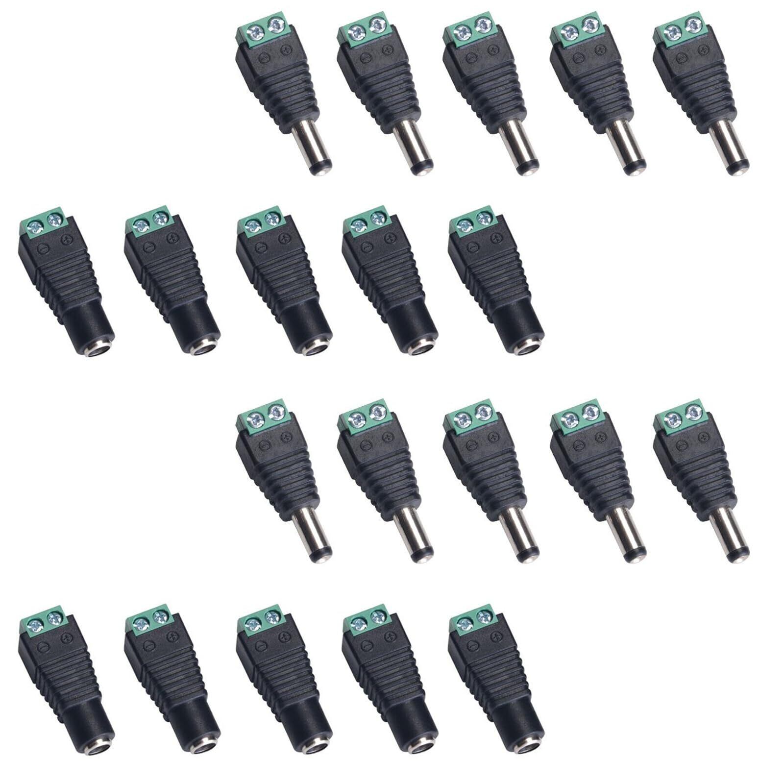 サムコス 5.5mm x 2.1mm DC 12V電源アダプタクイックコネクタ ネジ端子アダプタ CCTVカメラとLEDテープライト用DCジャック変換プラグ 20個セット (10メス + 10オス)