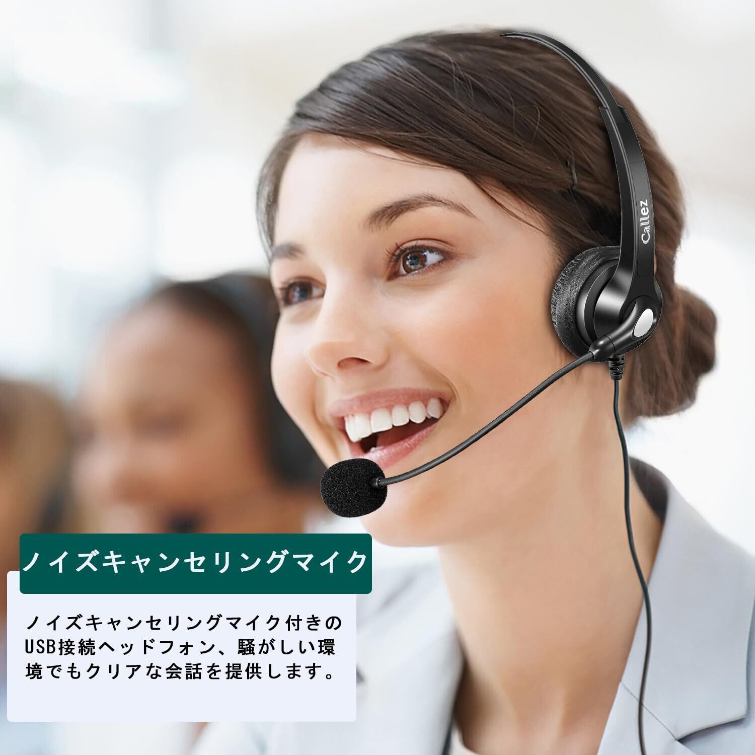 CALLEZヘッドセットUSB接続 両耳 ミュート機能付きPC用ヘッドセット ノイズキャンセリングマイクと音量調節付きオフィス用ヘッドフォン 軽量 Skype Zoom Web会議 在宅勤務 テレワーク オンライン通話 ビデオチャット適用 クリアな通話 快適耐久設計 幅広い互換性 適格請求書発行可