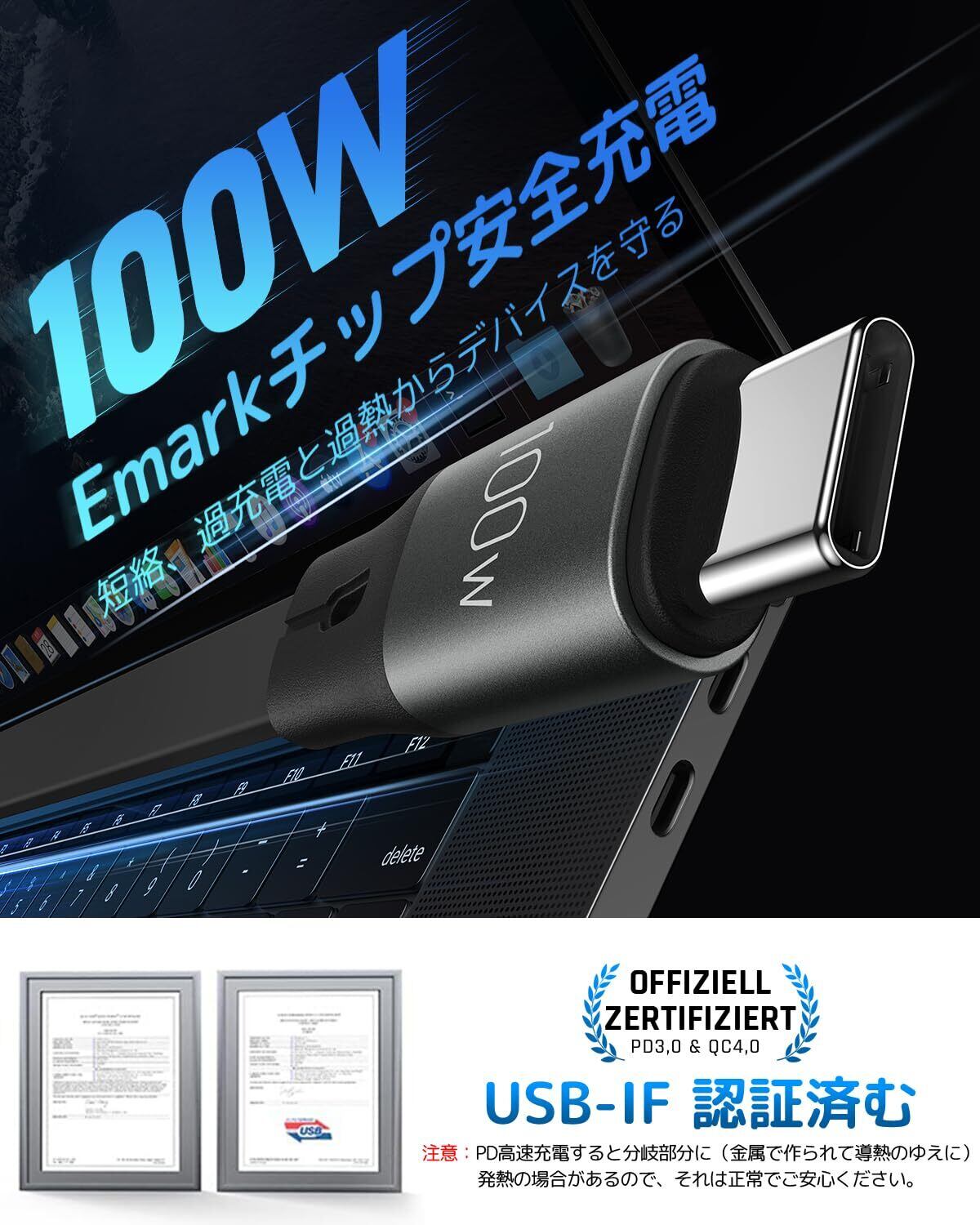 【第7世代進化モデル&E-Markチップ搭載】CAFELEの第7世代高速充電ケーブルは、ユニークなデュアルスマートチップデザインを採用しています。最大5Aの電流を提供するUSB-C to USB-Cケーブルで、MBook Proを30分で65%まで超高速充電が可能です。さらに、過熱や過充電を防ぐ新デザインにより、あなたとあなたのデバイスを安全に保護します。充電速度に満足できない方は、ぜひ当製品をご検討ください。