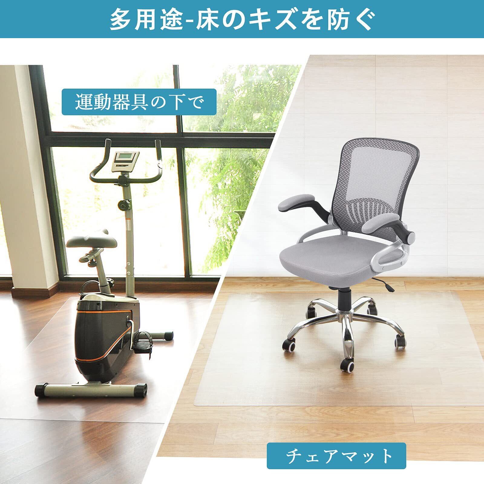【傷防止マット】キャスターの素材によっては床にキズをつけたり、椅子に座ることによってかかる加重で床をへこませてしまう場合があります。この1.5mmPVC製のチェアマットがあれば、床への傷や汚れからしっかり守ってこれらの問題を解決! 詳しい情報は商品の説明欄にご参照くださいますようお願い申し上げます。