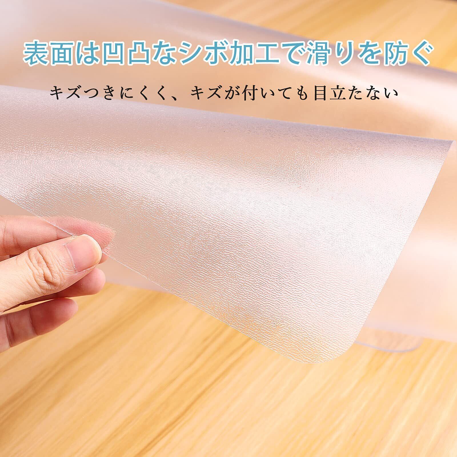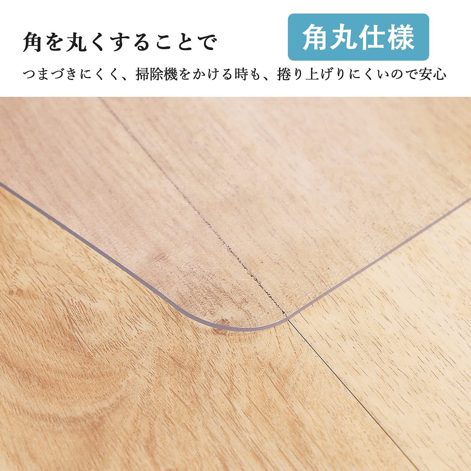 【ちょうどいいサイズ】幅80×奥行100×厚み0.15cm。pvcチェアマットはインテリアに馴染みやすくてフローリングや畳が溶ける半透明タイプなので、圧迫感がなくお部屋の雰囲気を損なうことなく、どんなお部屋やインテリアも違和感なくマッチします。チェアにはもちろん、キッチンや食卓、ペットのケージ周りなど幅広く使えます!ヒント: 記載されているサイズは規定値です。個体により若干の誤差((1-2cm))が発生致しますので、あらかじめご了承下さい。