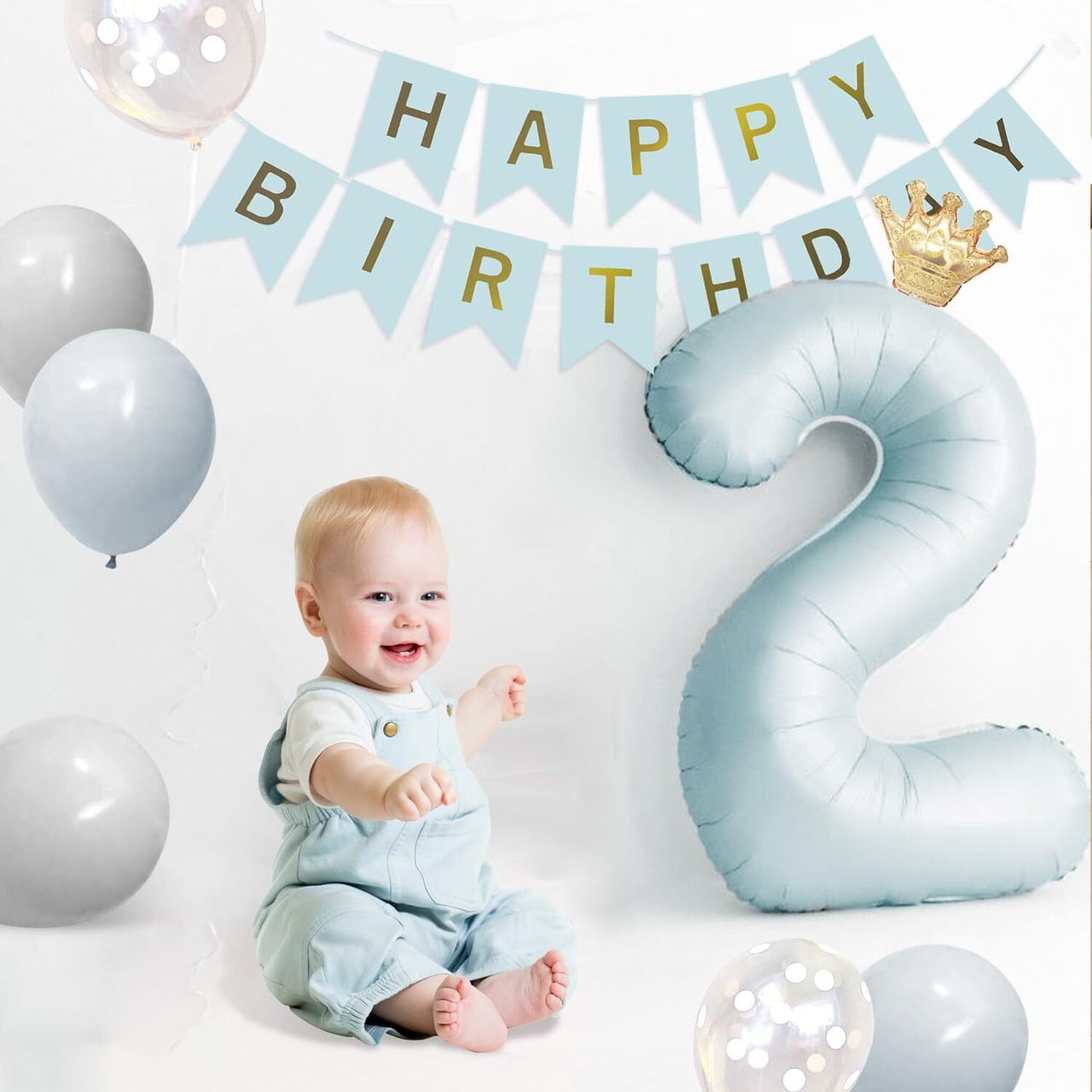 Iysoll 4歳 誕生日 飾り付け babyblue 大きい 数字 風船 40インチ 誕生日 飾り 風船 セット 四歳 ナンバーバルーン 王冠 バースデーバルーン 4 くすみブルー