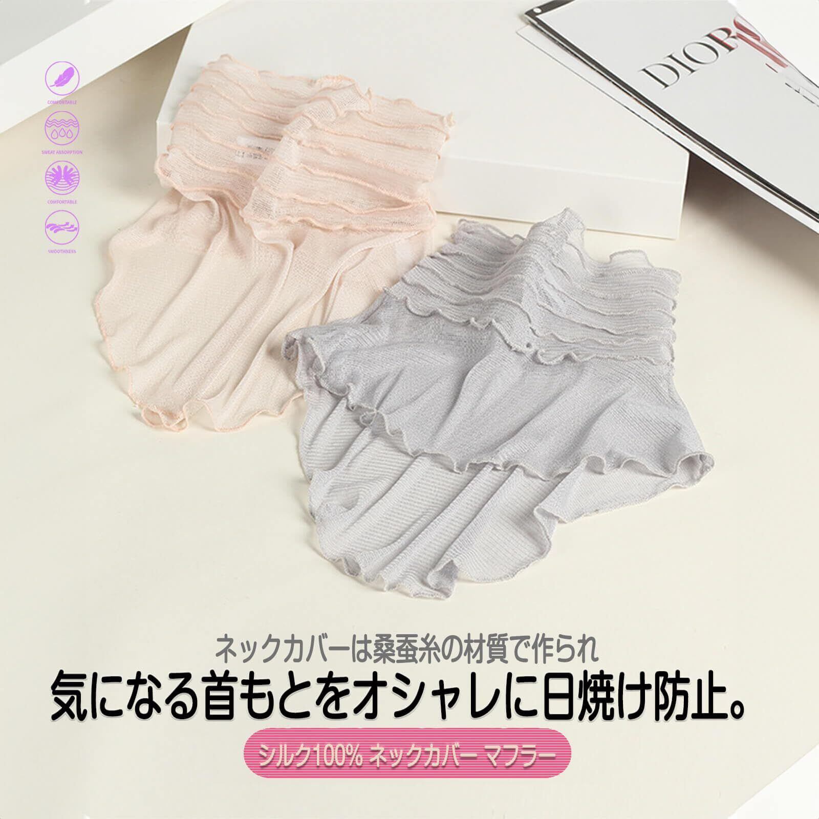 【ネックカバー】夏の強い日差しから首元を守る必需品。100%シルク生地は吸汗性に優れ、常にサラサラ感を保ちます。ストレッチチュールネット素材を採用しているため、夏でも快適に日差しを遮り、オシャレに日焼け防止。