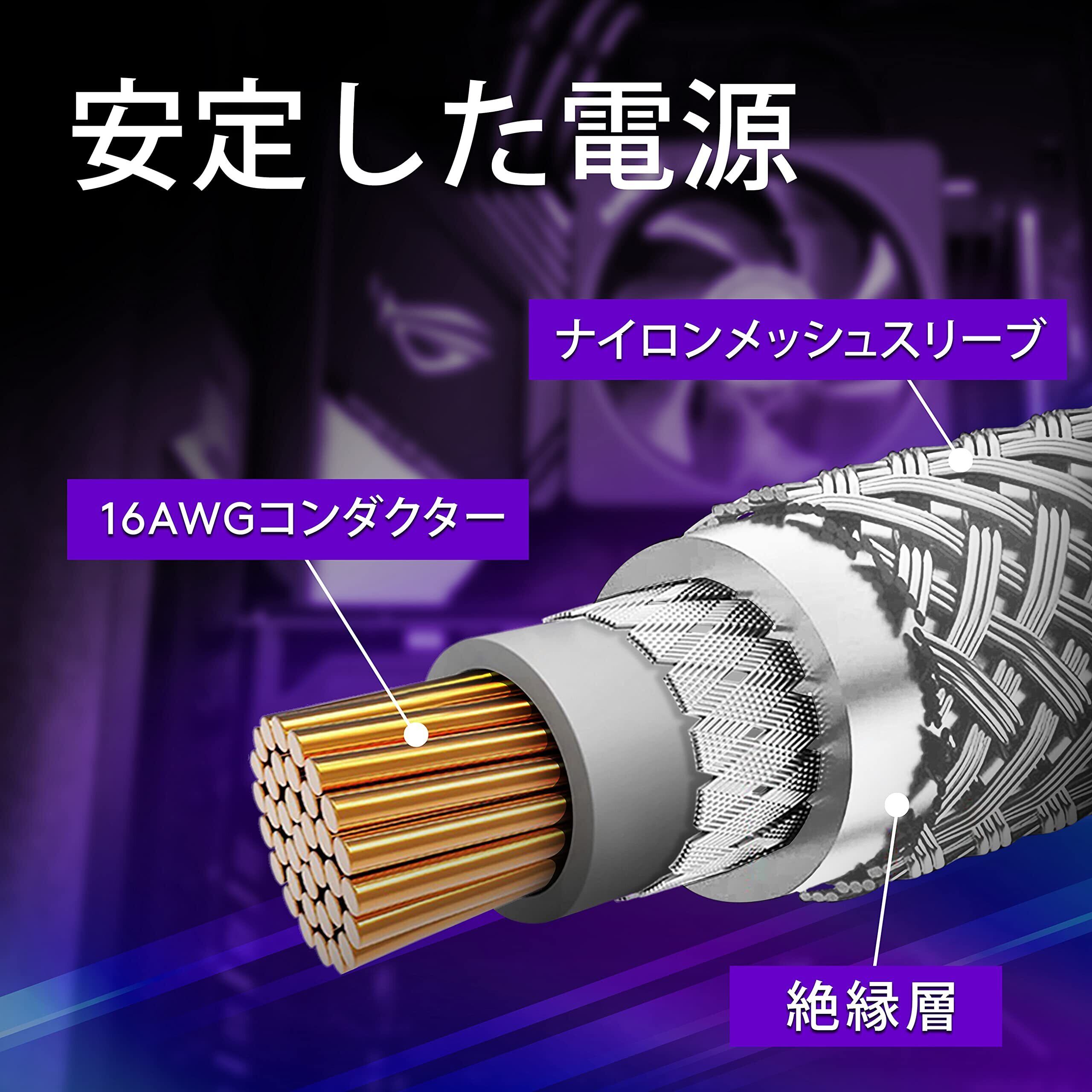 長さ30cm / 11.8in、16 AWG錫メッキ銅ケーブル、1200W +電源と互換性があり、高密度の柔軟な保護スリーブが装備されています。