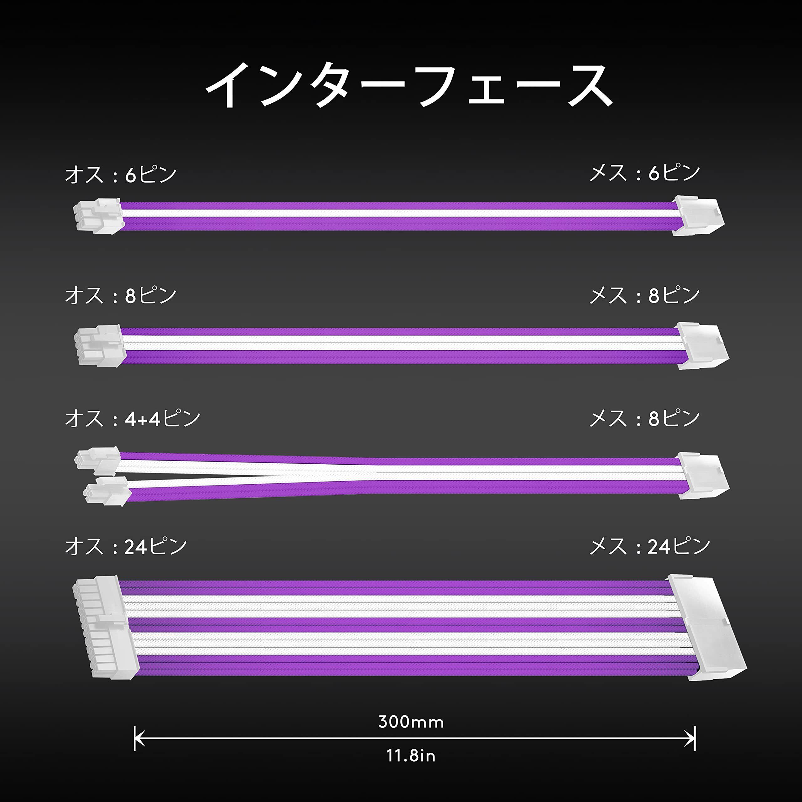 EZDIY-FAB 電源専用 PSUケーブル 延長スリーブモジュラーケーブル16AWG 白いコネクタ+白と紫スリーブケーブル 24PIN / 2 x 8PIN/2 x6PIN / 1 x 4 +4PIN +白い櫛 (30cm) - 6本1セット