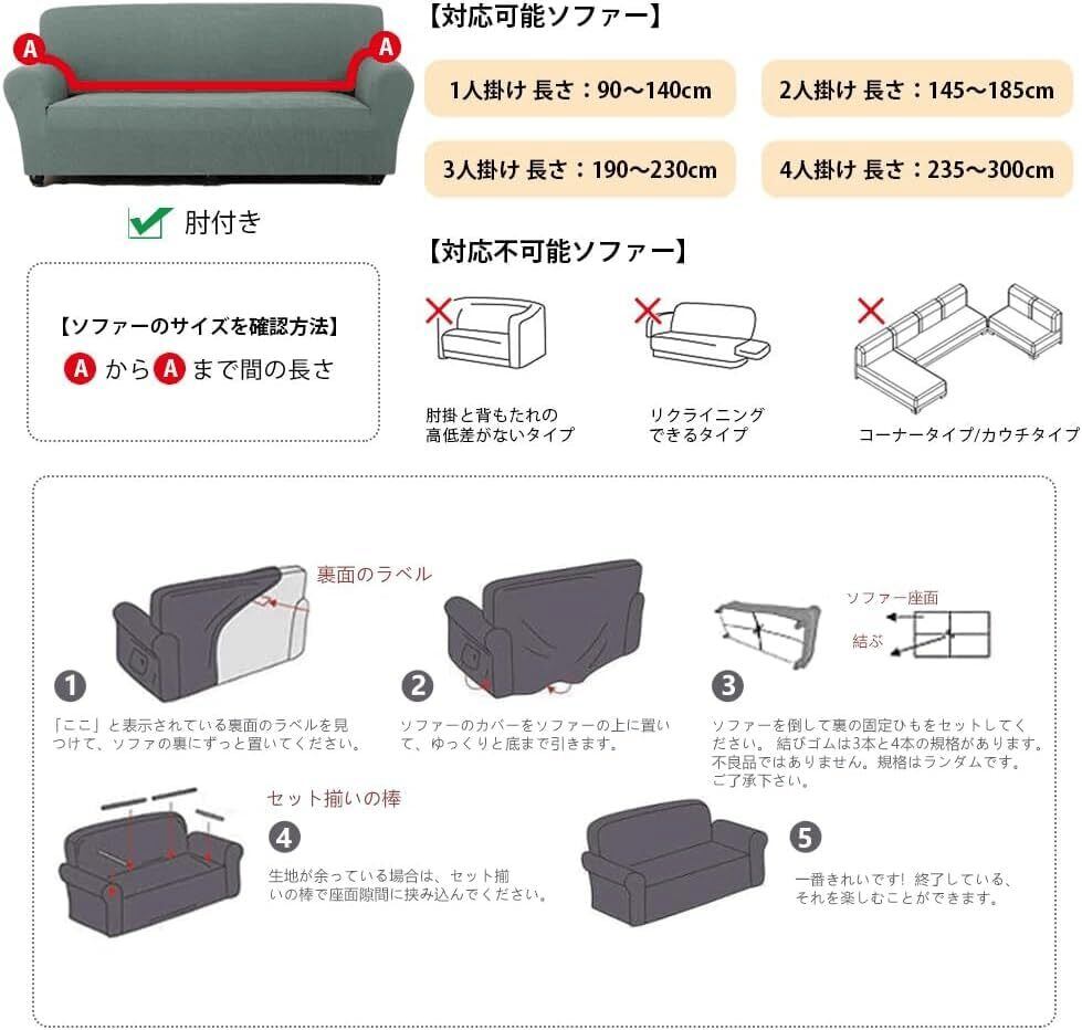 - **高弾性素材**: ソファの形にぴったりとフィットするストレッチ素材を採用し、1人掛けから3人掛けまで対応可能!