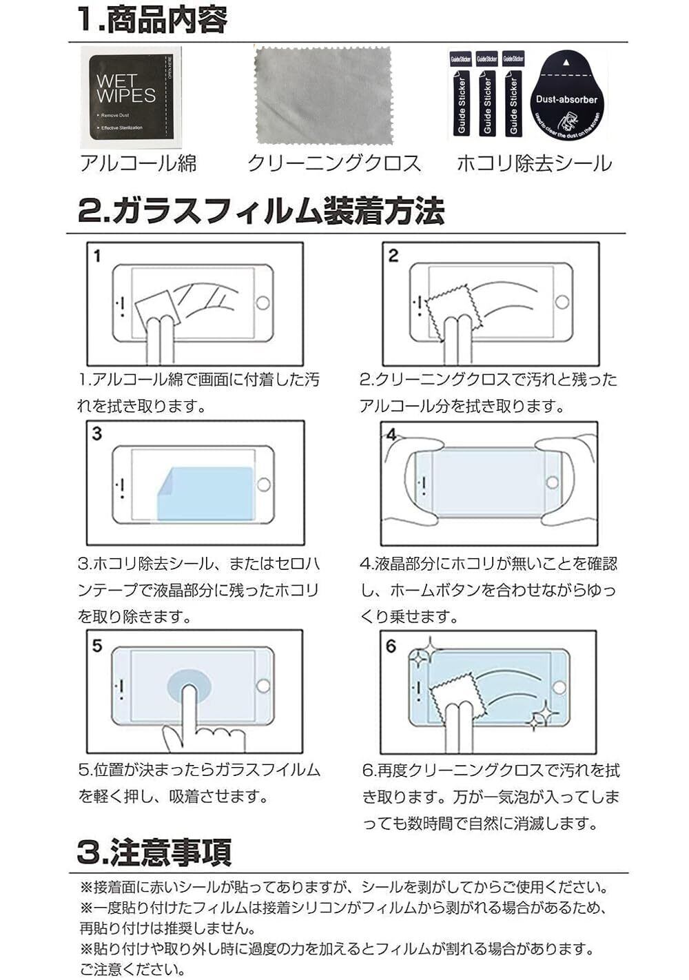 【指紋防止・飛散防止】撥油コーティング加工されているため、ホコリや指紋など汚れにくくなっています。付着しても簡単に拭き取れます。ガラスフィルムは飛散防止加工されておりますので、万が一割れの場合でも、破片が飛び散らず張り付いた状態になります。