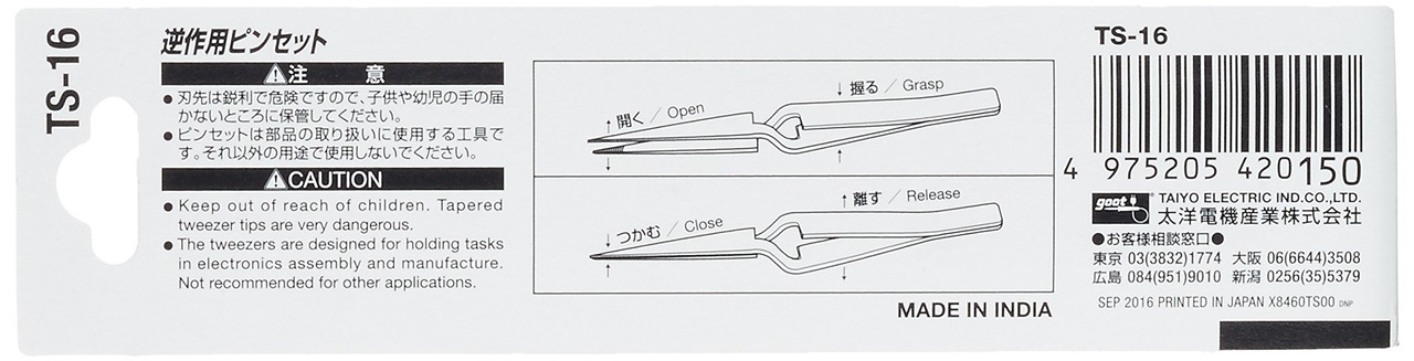 太洋電機産業(goot) 逆作用ピンセット 小 TS-16