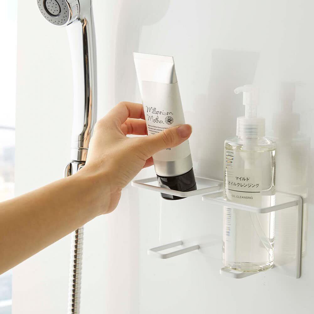 山崎実業(Yamazaki) マグネット バスルーム チューブ&ボトルホルダー M ダブル ホワイト 約W18×D6.1×H8cm タワー tower 浮かせて収納 クレンジングボトル 洗顔 浴室収納 5506