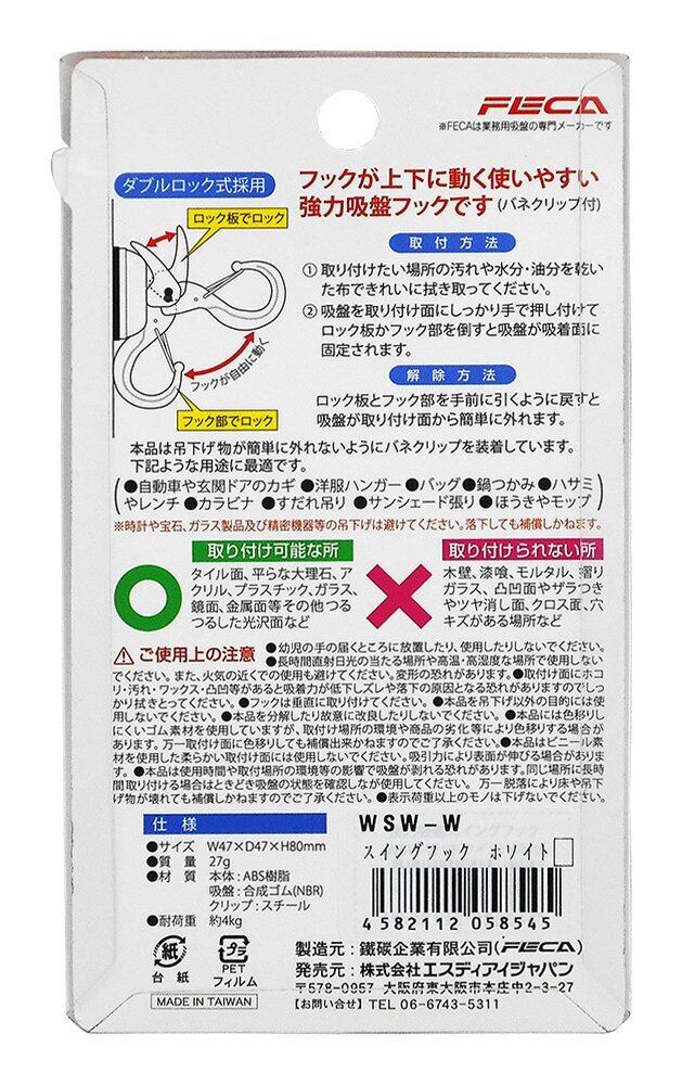 エスディアイジャパン 吸盤フック WSW-W 奥行4.7×高さ8×幅4.7cm